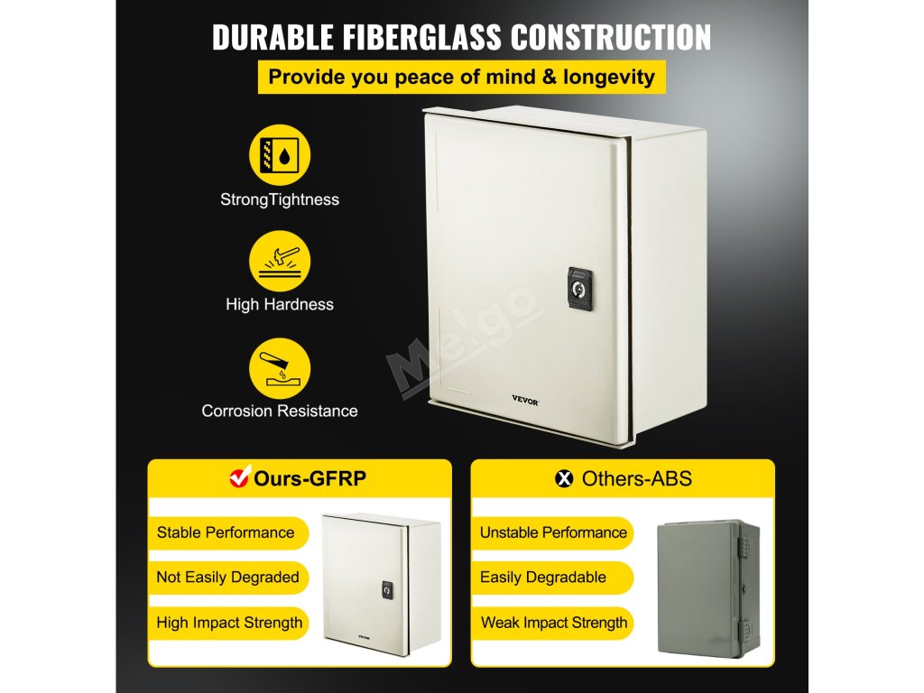 Závěsná skříňka je vyrobena z polyesteru vyztuženého skleněnými vlákny s vysokou houževnatostí, odolností proti tlaku a korozi. Skříňka je odolná proti promáčknutí a snadno se nedeformuje.