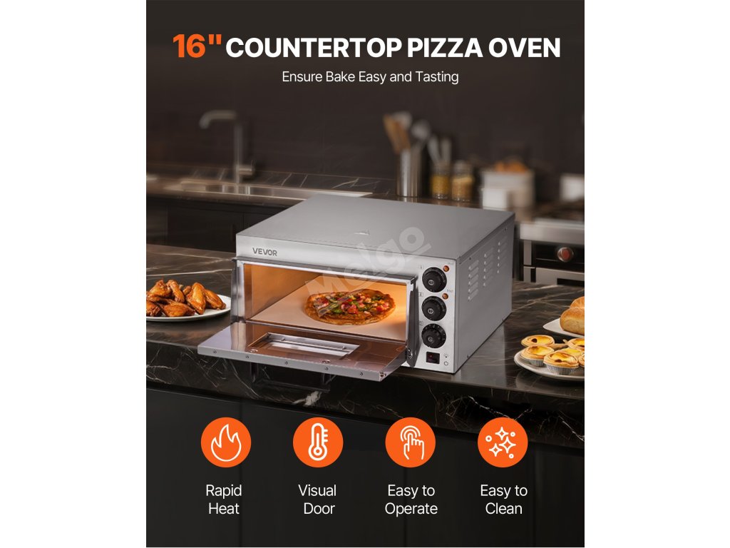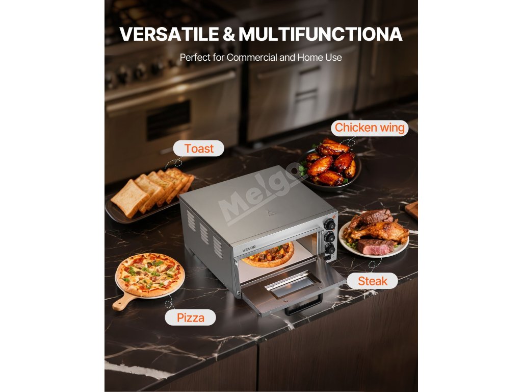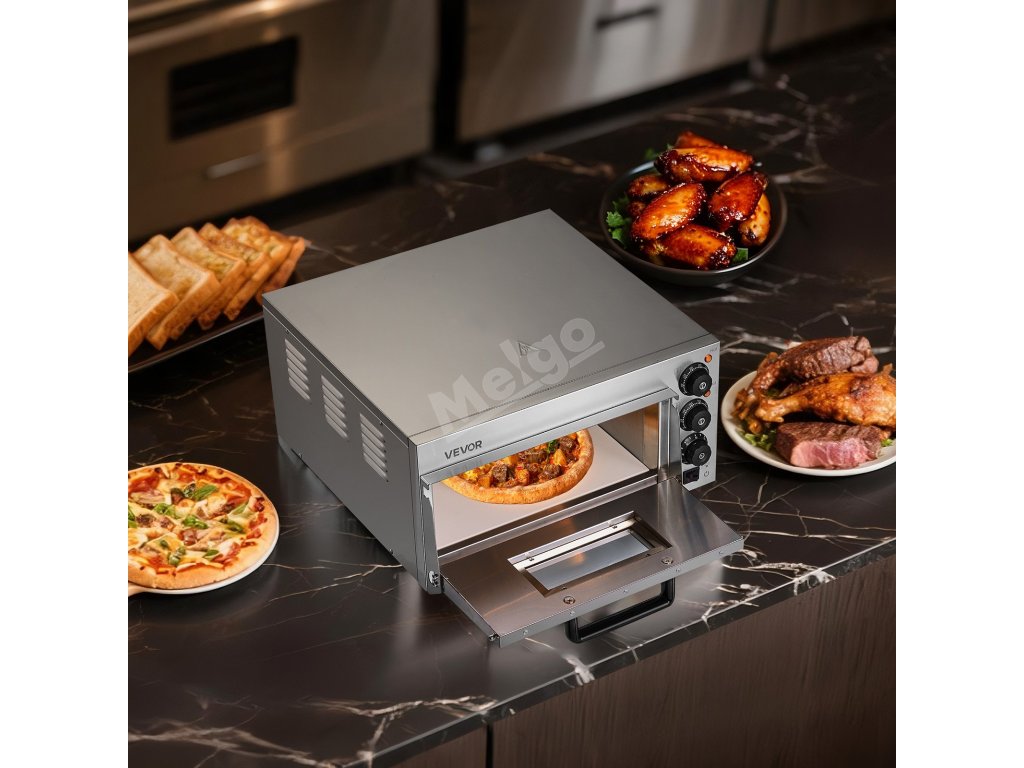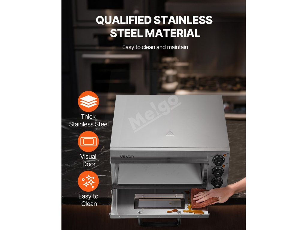 Komerční pec na pizzu VEVOR vyrobená z potravinářské nerezové oceli zaručuje nejen dlouhou životnost, ale také zdravé prostředí pro pečení. Nepřilnavý vnitřní materiál navíc umožňuje bezproblémové čištění a zábavné pečení.