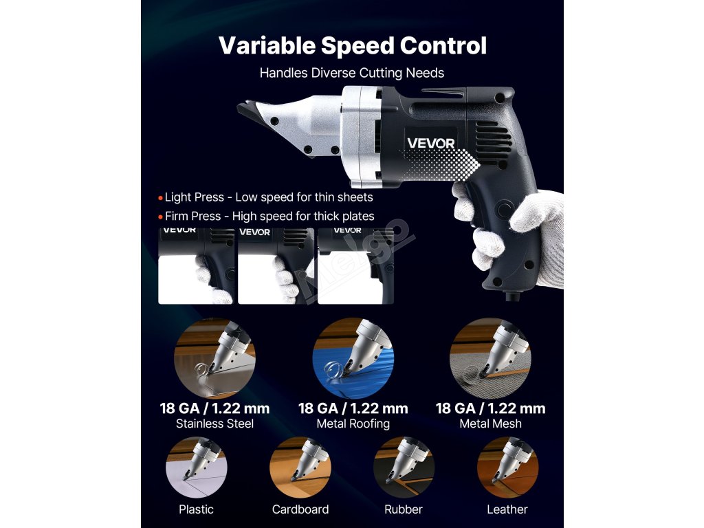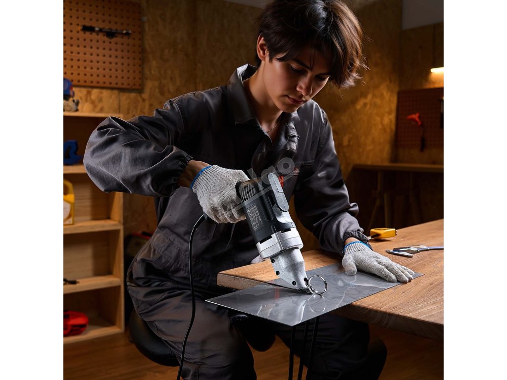 Tyto elektrické nůžky jsou určeny ke stříhání široké škály materiálů, snadno přestřihnou plech, plast, lepenku, gumu i kůži. Jejich všestrannost splňuje požadavky pro různé projekty v dílnách, garážích i pro domácí použití.
