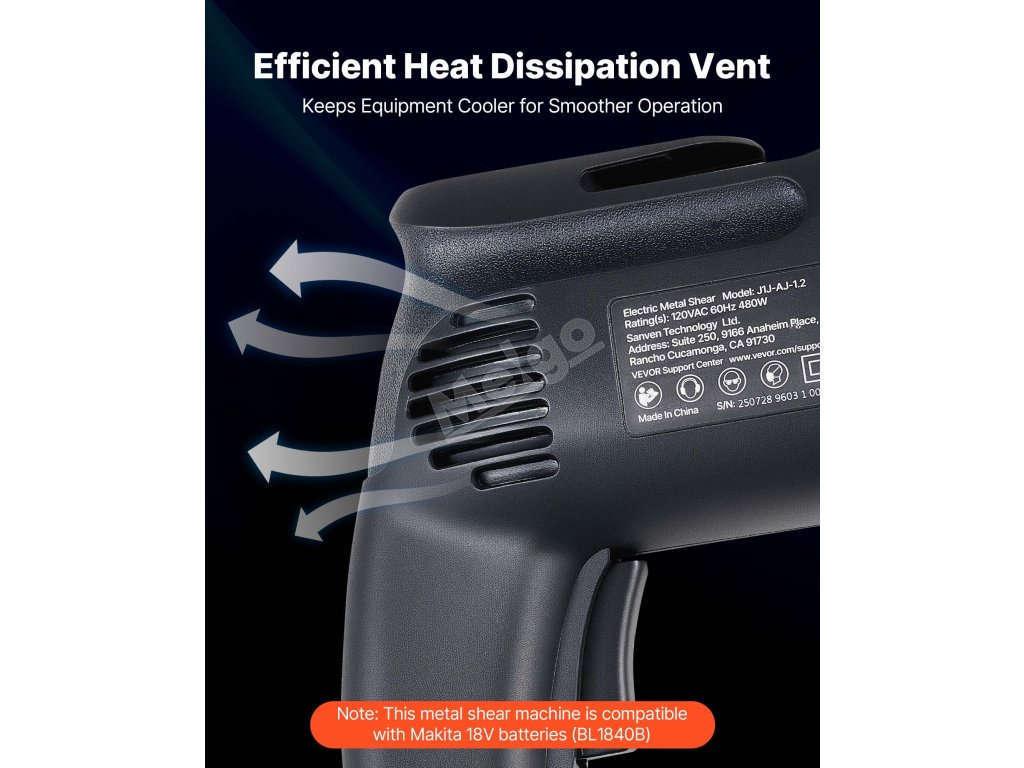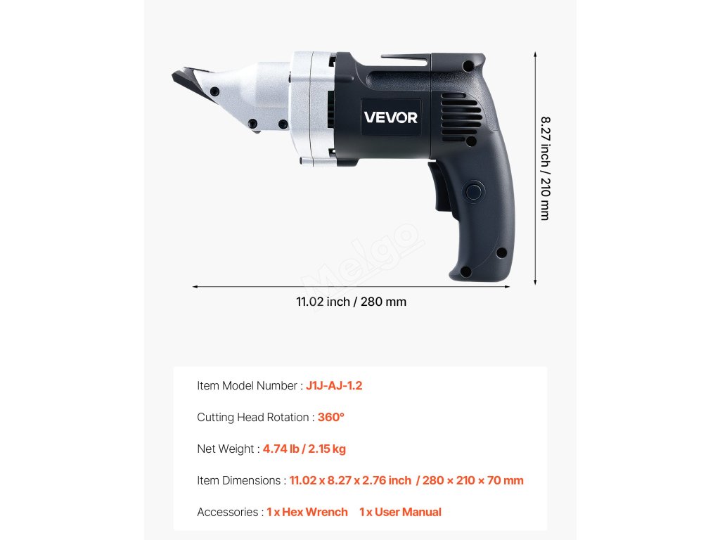 Tyto nůžky na plech poskytují efektivní a stabilní stříhání s vysokým výkonem. Hlava otočná o 360 stupňů si snadno poradí s různými tvary střihu a plynulá regulace otáček se přizpůsobí tloušťce materiálu. Čepele z kalené oceli zajišťují, že každý střih je přesný a bez námahy.