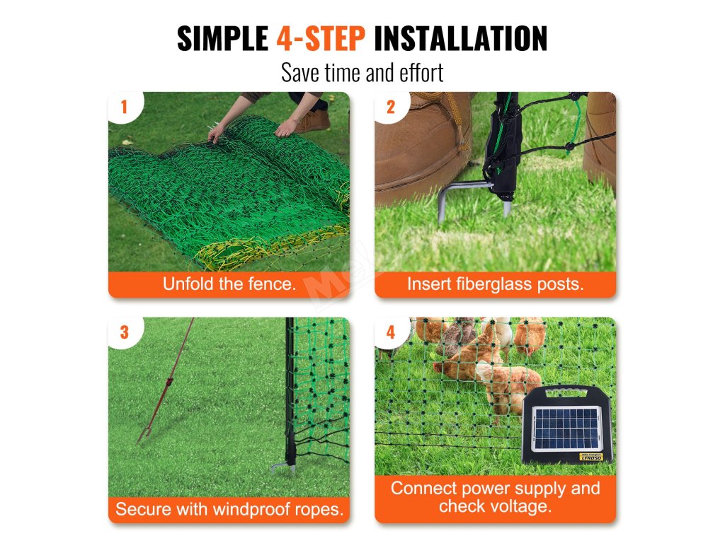 Náš elektrický ohradník lze nainstalovat v pouhých čtyřech jednoduchých krocích, což výrazně zkracuje dobu instalace a snižuje technickou náročnost. Díky kompletnímu příslušenství minimalizujeme další problémy s nákupem a možné chyby při instalaci.