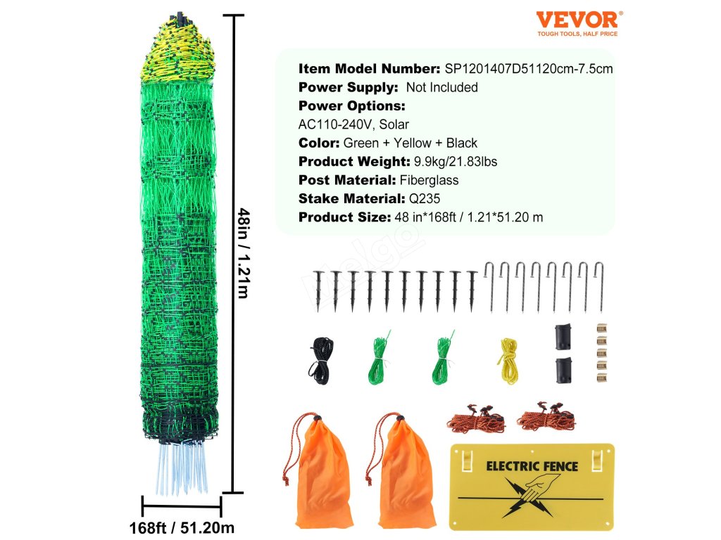 Elektrické síťové oplocení 48"×168' pe, s tyčemi a dvojitými kolíky