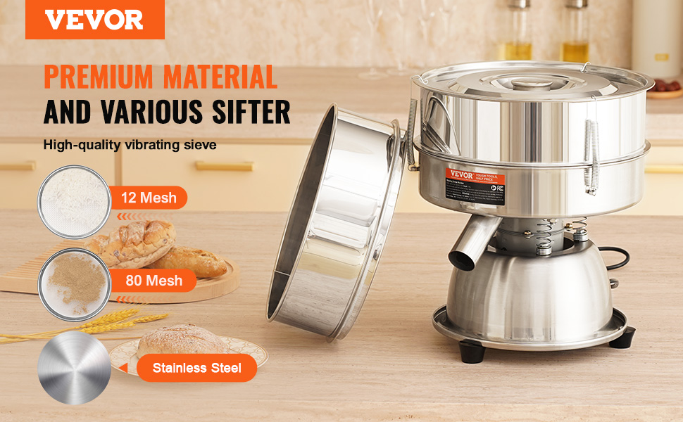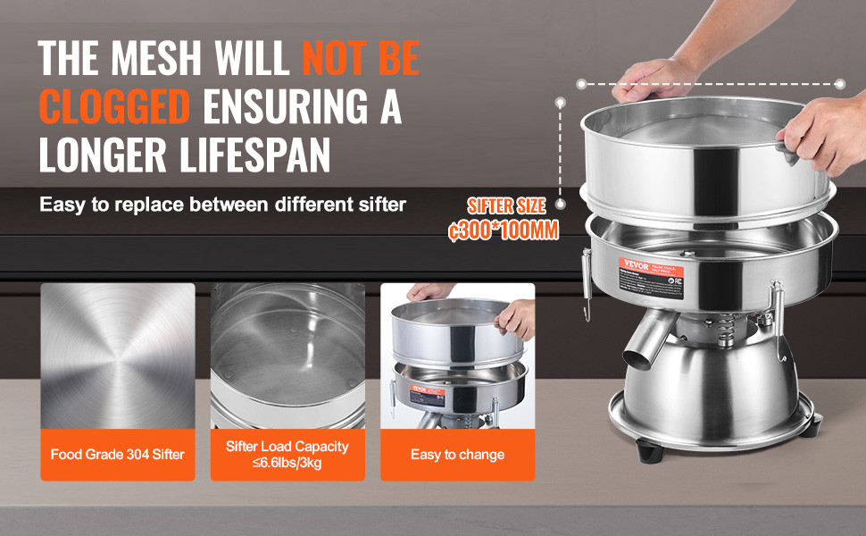 Naše elektrická sítová třepačka je vyrobena z pečlivě vybrané prvotřídní nerezavějící oceli a každá její součást prochází přísnou kontrolou kvality, aby byla zajištěna její trvanlivost. K dispozici je řada velikostí ok, které vyhoví vašim různým potřebám při prosévání.