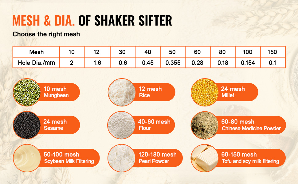 Čím větší je počet ok, tím jemnější částice může filtrovat; naopak menší počet ok znamená, že může zpracovávat větší částice. Pro vaši informaci uvádíme několik běžných aplikací. V případě konkrétních dotazů se obraťte na náš zákaznický servis.