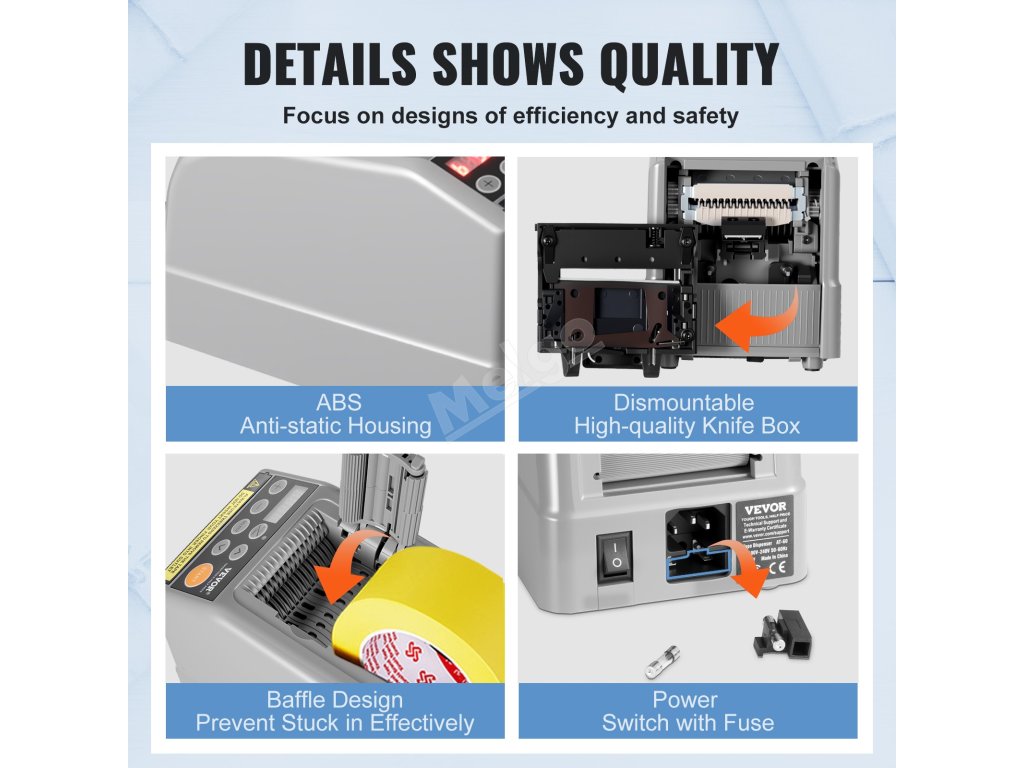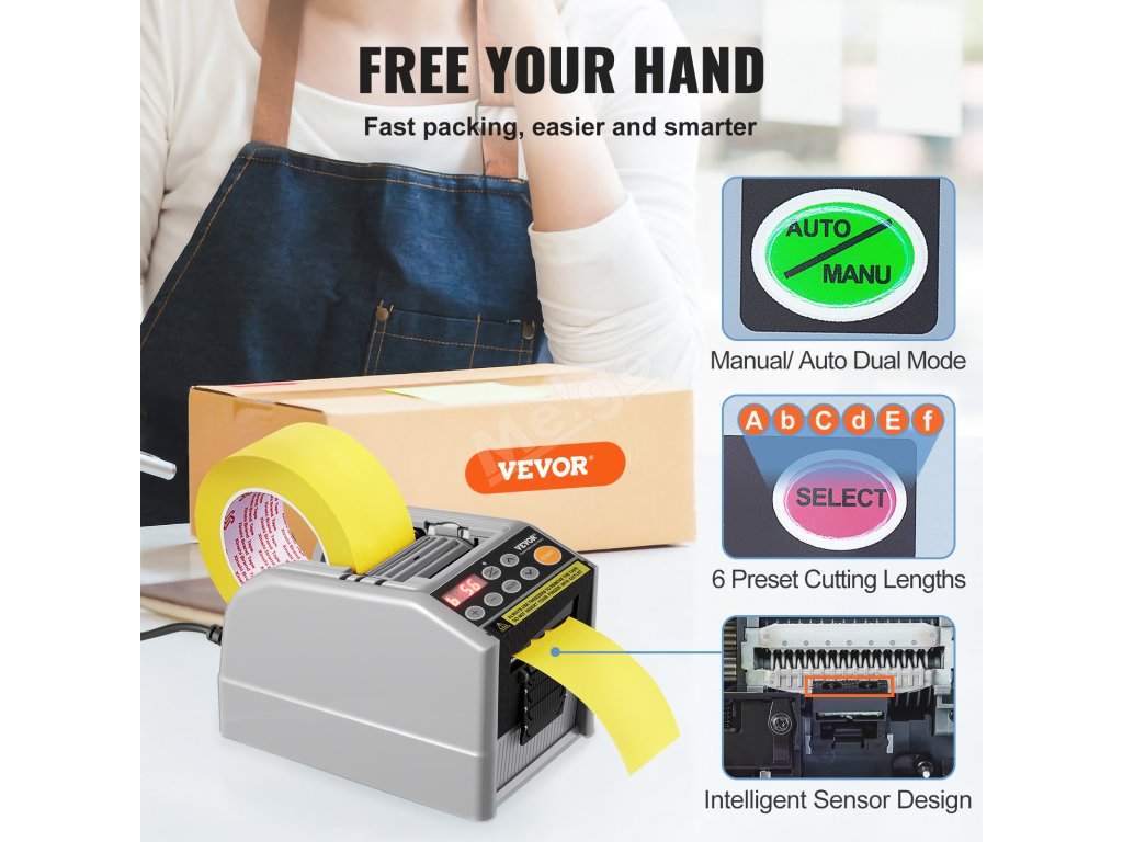 Jste připraveni na to, že každá výzva bude pevně zabalená? Inteligentní kancelářský dávkovač pásky VEVOR nabízí manuální/automatický duální režim, který vyhoví vašim různým požadavkům.Můžete si zapamatovat 6 různých délek (0,2"-39,3"/5-999 mm) pro dávkování. Dokáže současně odříznout 2 role pásky o šířce až 2,36"/60 mm, což může využít více uživatelů. Elektrický automatický dávkovač pásky je ideální pro průmyslové závody, komerční odvětví, kanceláře, domácnosti, květinářství a obchody. Připravte se na balení, které je efektivní a krásné!