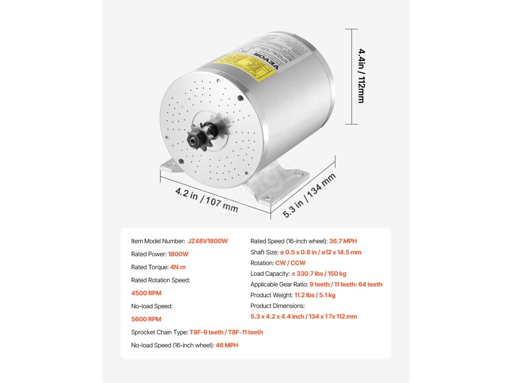 Vylepšete svou jízdu s jistotou a zažijte vyšší výkon, spolehlivost a radost z jízdy díky 1800W 48V sadě bezkartáčového stejnosměrného motoru, vylepšenému regulátoru, jmenovitému točivému momentu 4 N.m a duálnímu ovládání ve směru a proti směru hodinových ručiček. Bez námahy zdolávejte stoupání a snadno projíždějte náročným terénem.