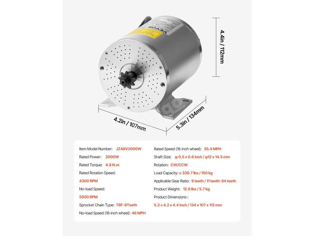 Vylepšete svou jízdu s jistotou a zažijte vyšší výkon, spolehlivost a potěšení díky sadě bezkartáčového stejnosměrného motoru o výkonu 2000 W a napětí 48 V, vylepšenému regulátoru, jmenovitému točivému momentu 4,8 N.m a obousměrnému ovládání vpravo a vlevo. Bez námahy zdolávejte stoupání a snadno projíždějte náročným terénem.