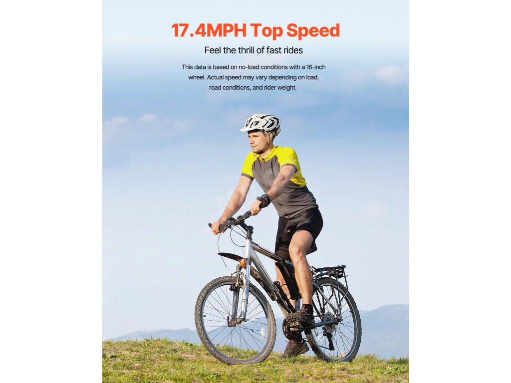 Zažijte maximální vzrušení při rychlosti 17,4 MPH v nenaloženém stavu! Pociťte radost z rychlé jízdy, díky které bude každá cesta nezapomenutelná. (Tato maximální rychlost vychází z podmínek bez zatížení s 16palcovým kolem - skutečná rychlost se může lišit v závislosti na zatížení, stavu vozovky a hmotnosti jezdce)
