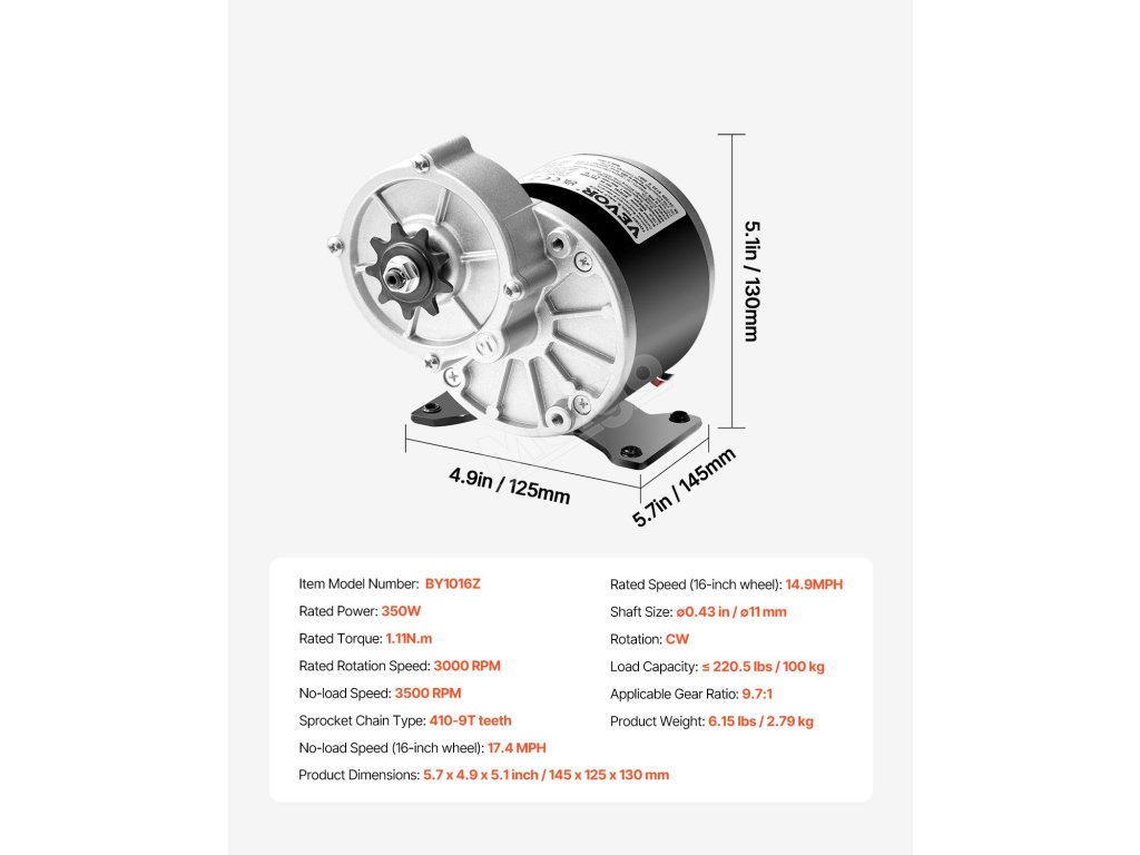 Vylepšete svou jízdu s jistotou a zažijte vyšší výkon, spolehlivost a potěšení z jízdy díky výkonnému 24V 350W bezkartáčovému stejnosměrnému motoru s jmenovitým točivým momentem 1,11 N.m, vysokou rychlostí a řízením směru jízdy vpravo. Bez námahy zdolávejte stoupání a snadno projíždějte náročným terénem.