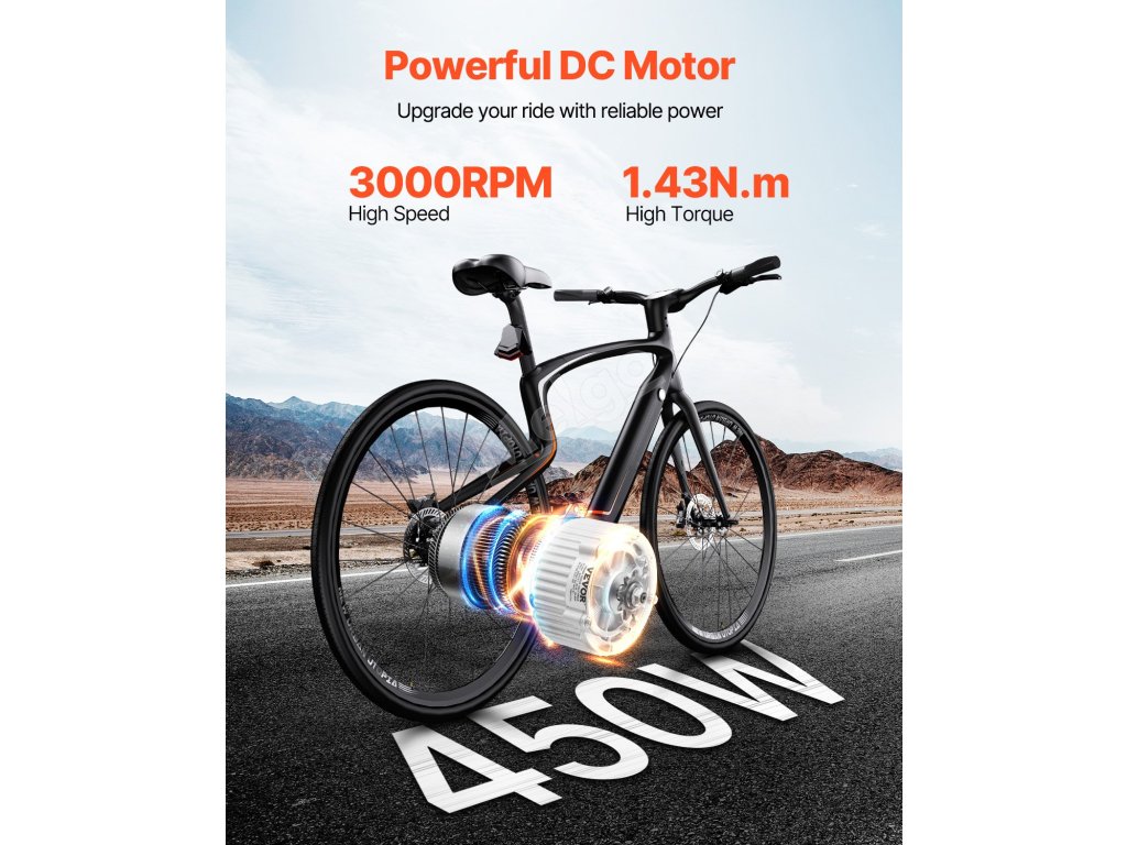 Vylepšete svou jízdu s jistotou a zažijte vyšší výkon, spolehlivost a potěšení z jízdy díky výkonnému stejnosměrnému motoru 450 W 36 V, vylepšenému regulátoru, jmenovitému točivému momentu 1,43 N.m a ovládání směru hodinových ručiček. Bez námahy zdolávejte stoupání a snadno projíždějte náročným terénem.