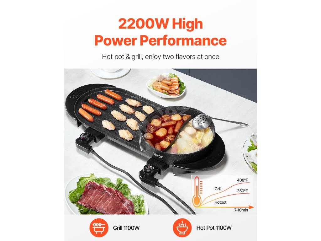 Elektrický gril a hotpot 2v1 2200W, dvě teploty, nepřilnavý 1–6 osob