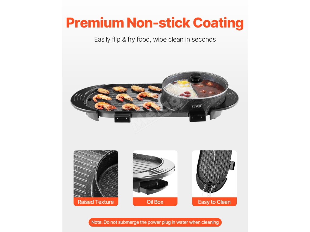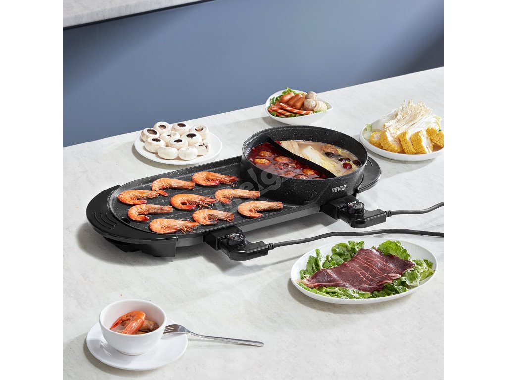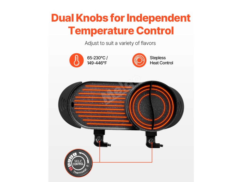 Náš elektrický hrnec a gril nabízí dvě zóny s knoflíky pro oddělené a přesné nastavení teploty. Bez námahy reguluje nízký a vysoký ohřev, čímž zajišťuje, že se vzájemně neruší, a poskytuje vám úplnou kontrolu pro lahodné výsledky vaření.