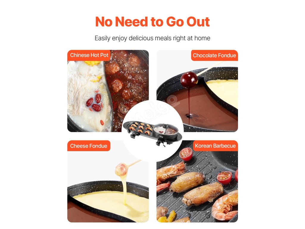 Grilujte, vařte, smažte nebo smažte, zvládnete to všechno. Náš horký hrnec s grilem se rovnoměrně a rychle zahřívá a snadno se čistí, takže je pohodlný a praktický pro přípravu různých pokrmů, aniž byste museli opustit svůj domov.