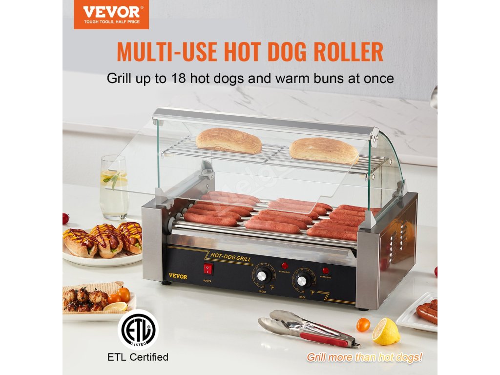 S válečkem na hot dogy VEVOR - 7 válečků na 18 hot dogů bude příprava vašich oblíbených pokrmů hračka. Zapněte přístroj, vložte párky v rohlíku a housky a nastavte automatický časovač. Vy ani vaši hosté neodoláte touze zakousnout se do lahodně šťavnatého hot dogu!