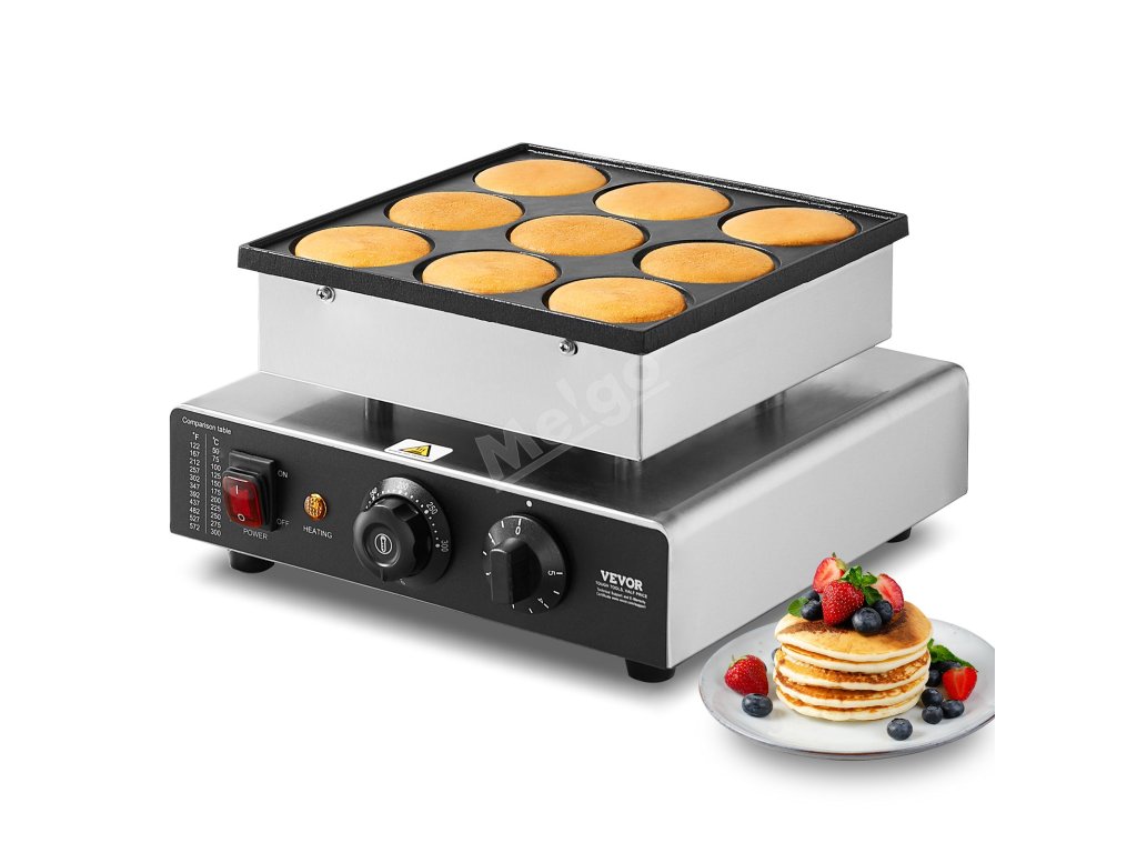 Elektrický gril na poffertjes 9 jamek ø76 mm, 850 W, nerez, regulace