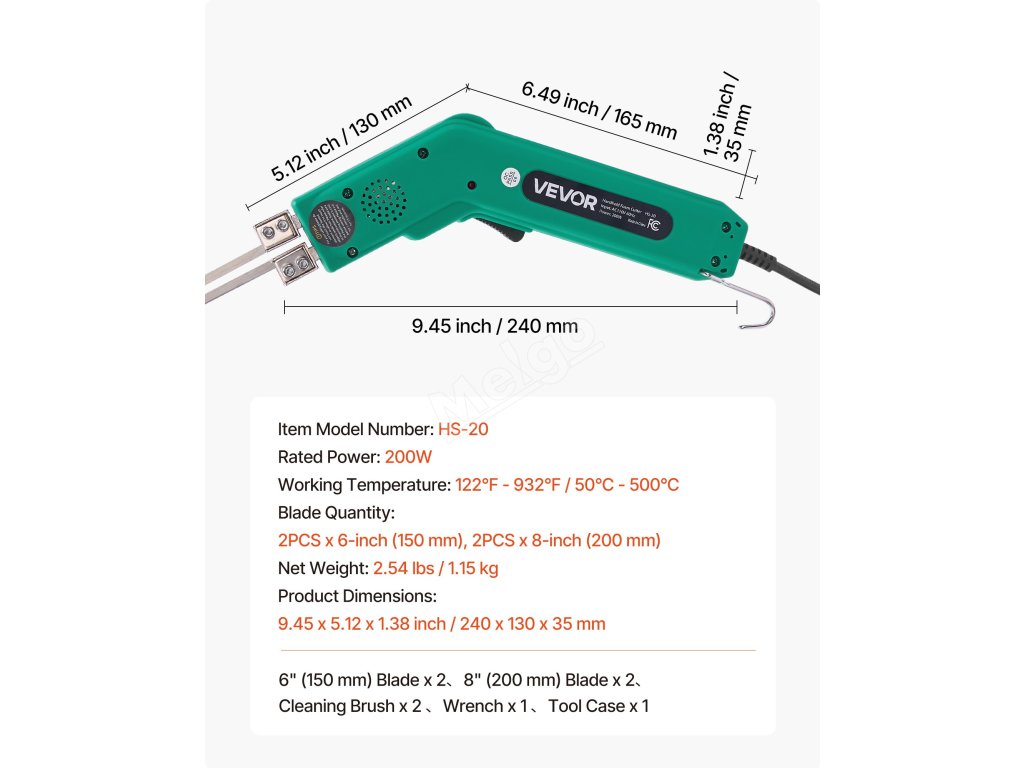 Elektrický horký řezák na pěnu 200W, 50–500°C, 150mm a 200mm čepele