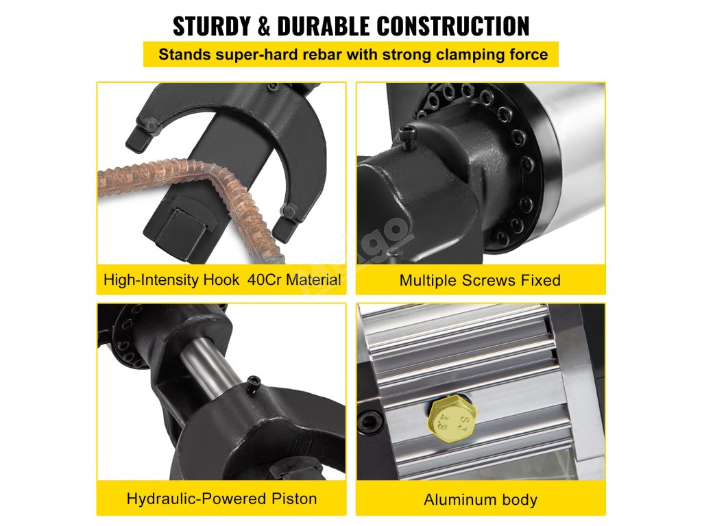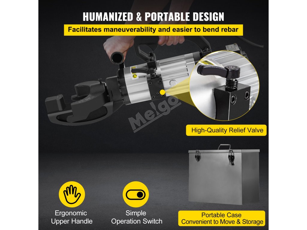 Hydraulická elektrická ohýbačka výztuže vám pomůže rychle dokončit práci díky širokému rozsahu ohýbání a dodávanému boxu na nářadí. Ať už na staveništi nebo v jakémkoli jiném prostředí, můžete začít rychle pracovat.