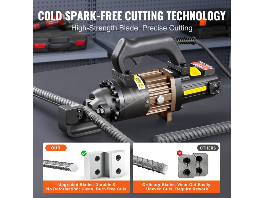 Naše vysokokvalitné nože sú navrhnuté na rezanie na oboch stranách tyče, zatiaľ čo viackruhová matica zvyšuje bezpečnosť a umožňuje otáčanie matice v polohe rezania, aby sa prispôsobila rôznym priemerom armovacích tyčí.