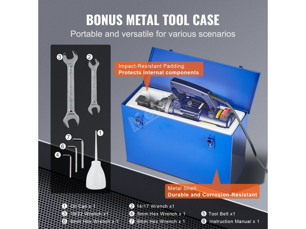 Hydraulická elektrická řezačka vám pomůže rychle dokončit práci, protože díky širokému rozsahu řezání a přiložené sadě nářadí se můžete rychle pustit do práce za jakýchkoli podmínek.