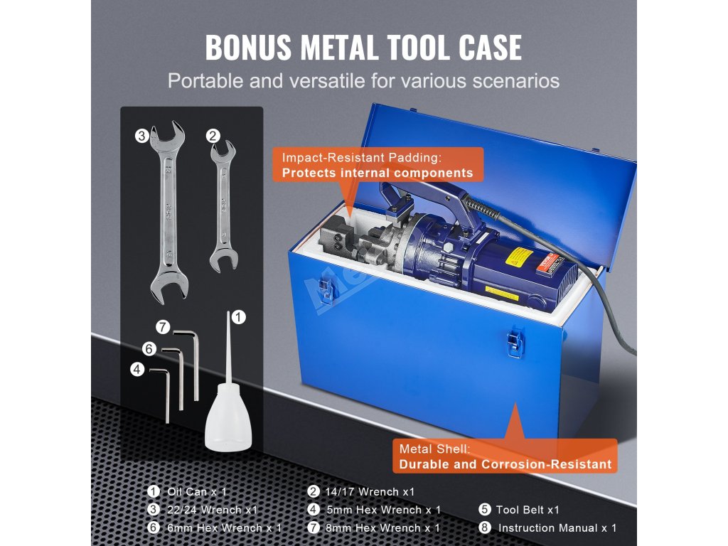 Hydraulická elektrická rezačka vám pomôže rýchlo vykonať prácu, vďaka širokému rozsahu rezania a priloženej súprave nástrojov sa môžete rýchlo pustiť do práce bez ohľadu na podmienky.