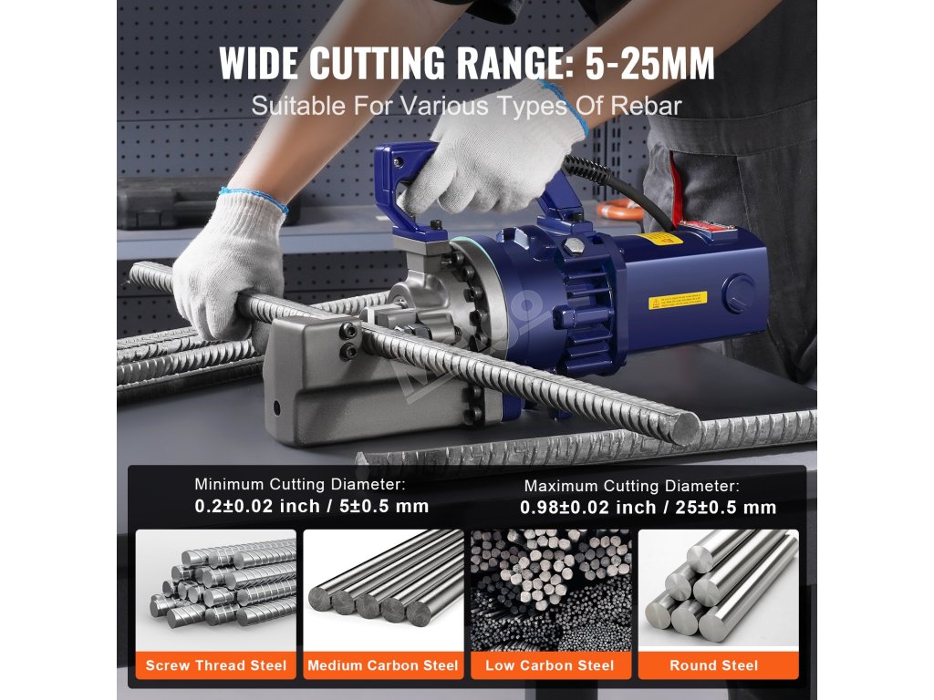 Elektrický hydraulický střihák na výztuže 1700 W, řeže 5–25 mm za 4 s