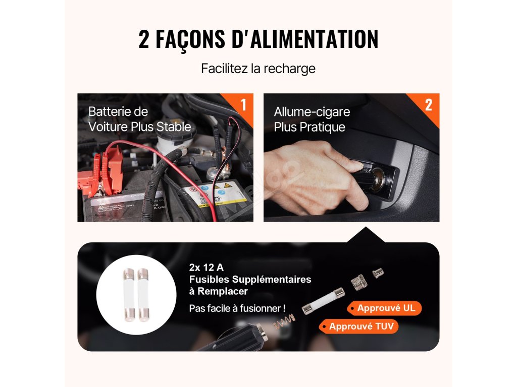 Usporiadanie s dvoma zdrojmi napájania je vhodné v garáži, na parkovisku alebo na ceste. V súprave sa nachádzajú aj tri náhradné poistky s certifikátom T-UV, ktoré sú bezpečné a spoľahlivé. Dodatočné poistky a dlhý kábel umožňujú inštalovať zdvihák kdekoľvek chcete bez obáv o napájanie alebo vzdialenosť.