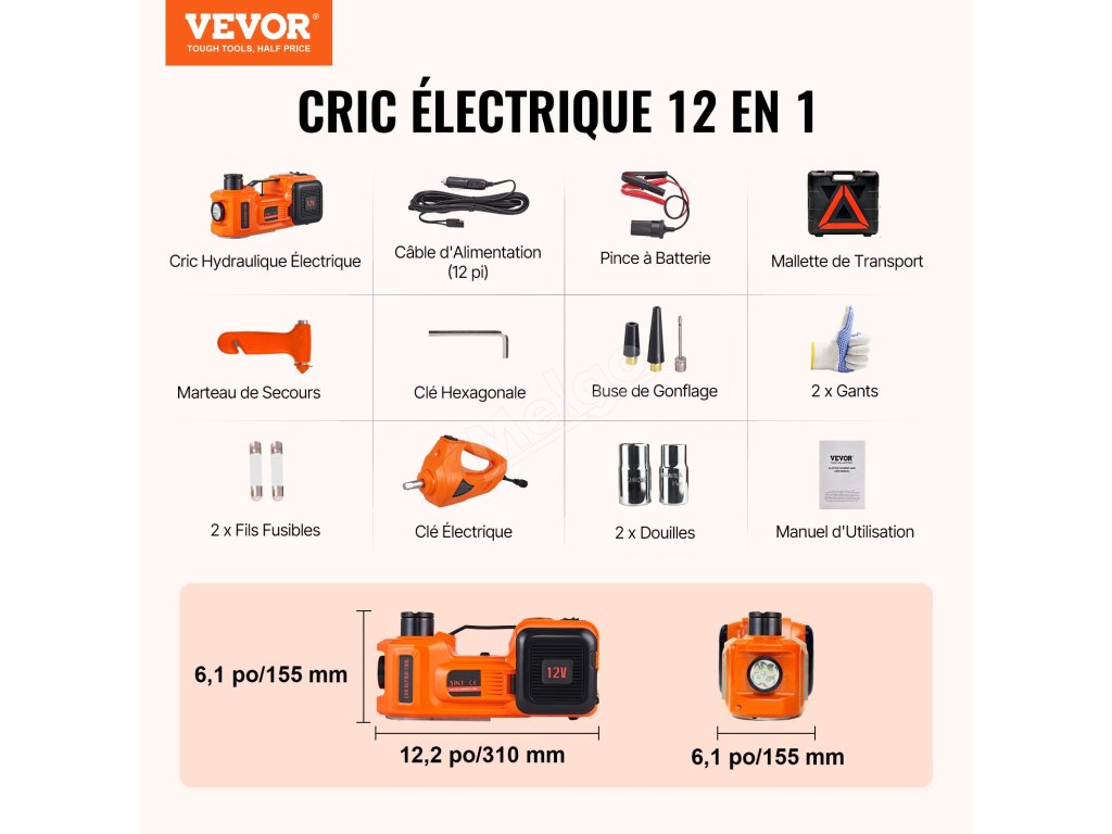 VEVOR Elektrický hydraulický zdvihák do auta so zabudovaným nafukovačom pneumatík