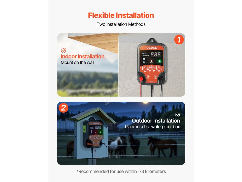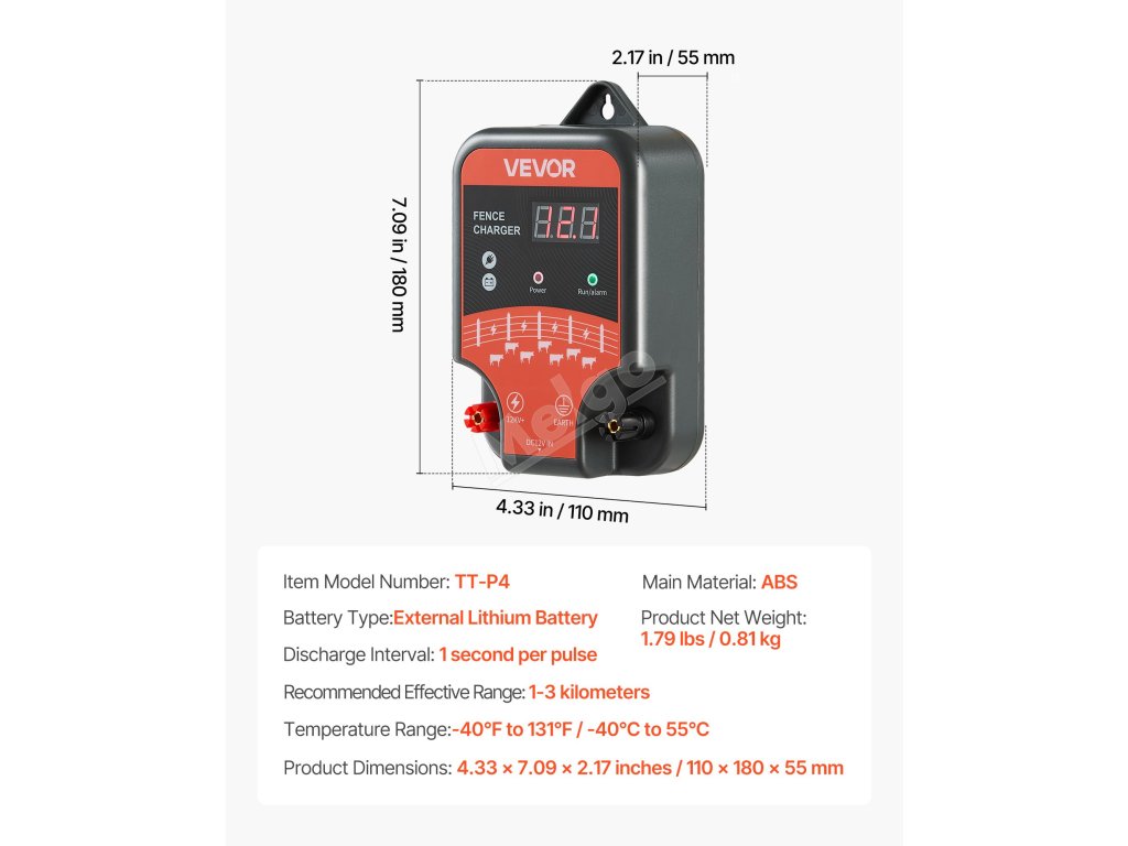 Tato nabíječka elektrického ohradníku poskytuje 3J silné šoky, které zabraňují vniknutí zvířat a zajišťují bezpečnost farem a hospodářských zvířat. Podporuje možnosti napájení střídavým, stejnosměrným a solárním proudem, aby vyhovovala různým potřebám prostředí. Pracuje při teplotách od -40 °C do 131 °C, což zajišťuje spolehlivý výkon.