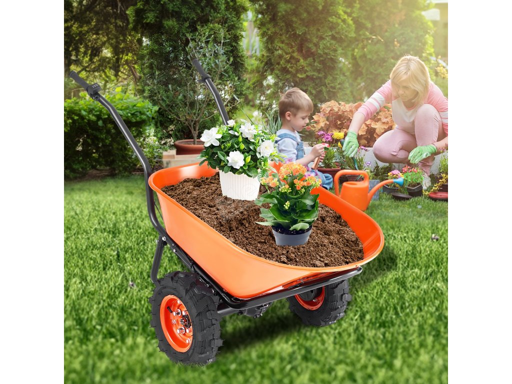 Tento zahradní vozík je ideální pro přepravu rostlin, půdy nebo zboží, ať už na zahradě, na dvoře, na farmě nebo ve skladu.