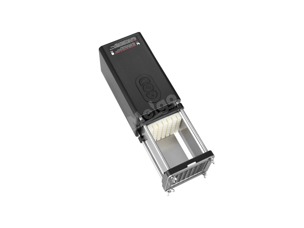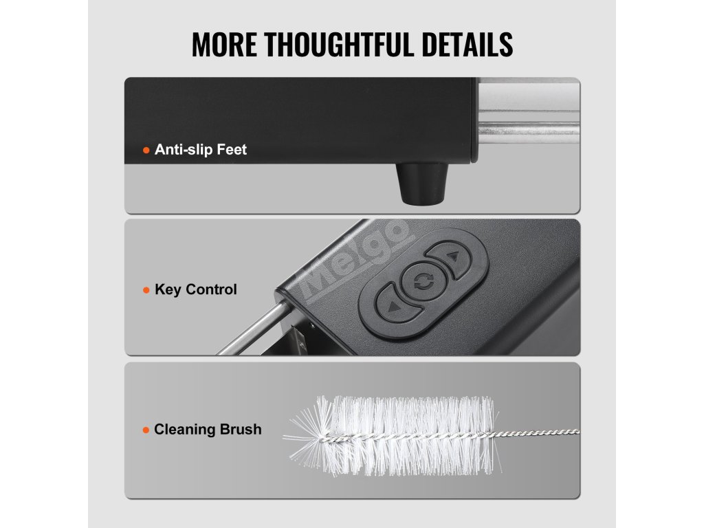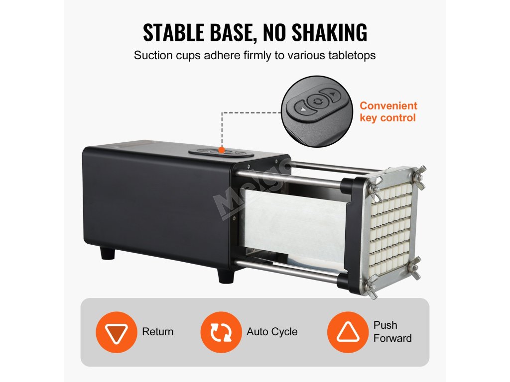 Tento elektrický kráječ na třísky má tlačítkový ovládací režim. Je vybaven funkcemi tlačení vpřed, zpět a automatického cyklu, které se snadno ovládají a rovnoměrně krájí potraviny.