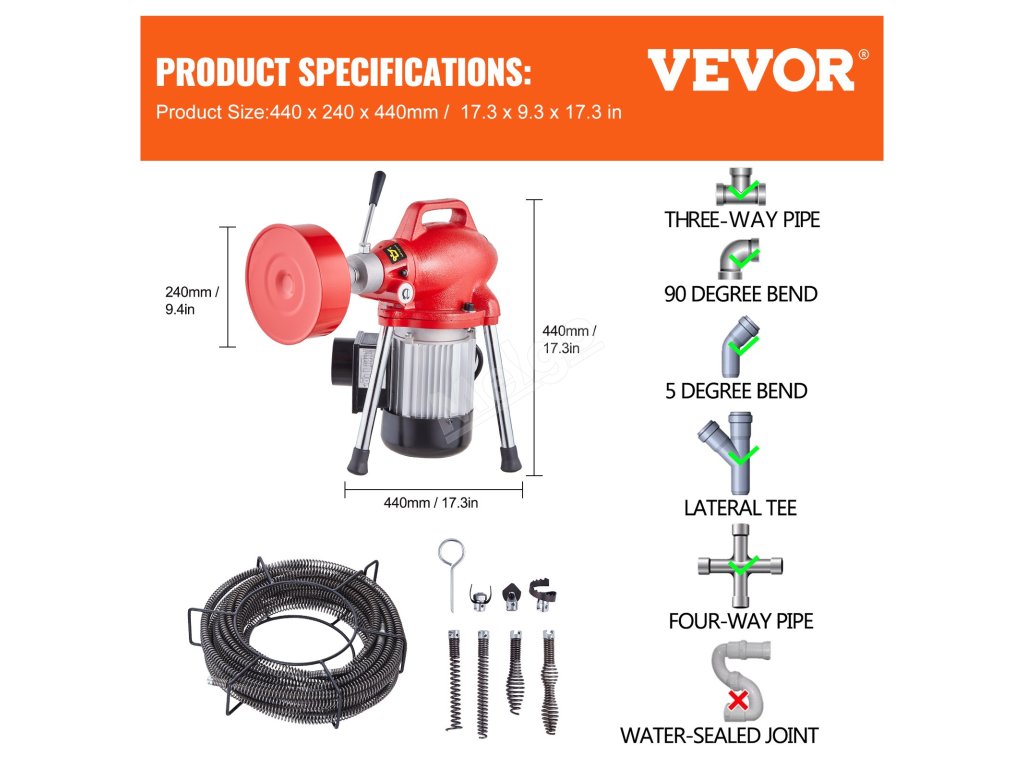 Už vás nebaví ucpané kanalizační potrubí a drahé instalatérské práce? Dejte sbohem nepříjemným zápachům a nepříjemné údržbě! Nechte stroj na čištění kanalizace VEVOR 66 FT x 5/8" vyřešit vaše problémy s ucpáním jedním tahem. Ušetřete za drahé instalatérské služby tím, že si s problémy s odtokem poradíte sami !