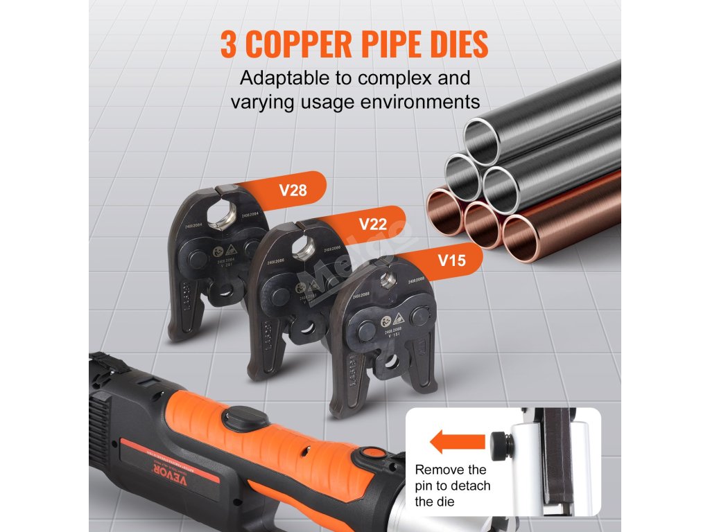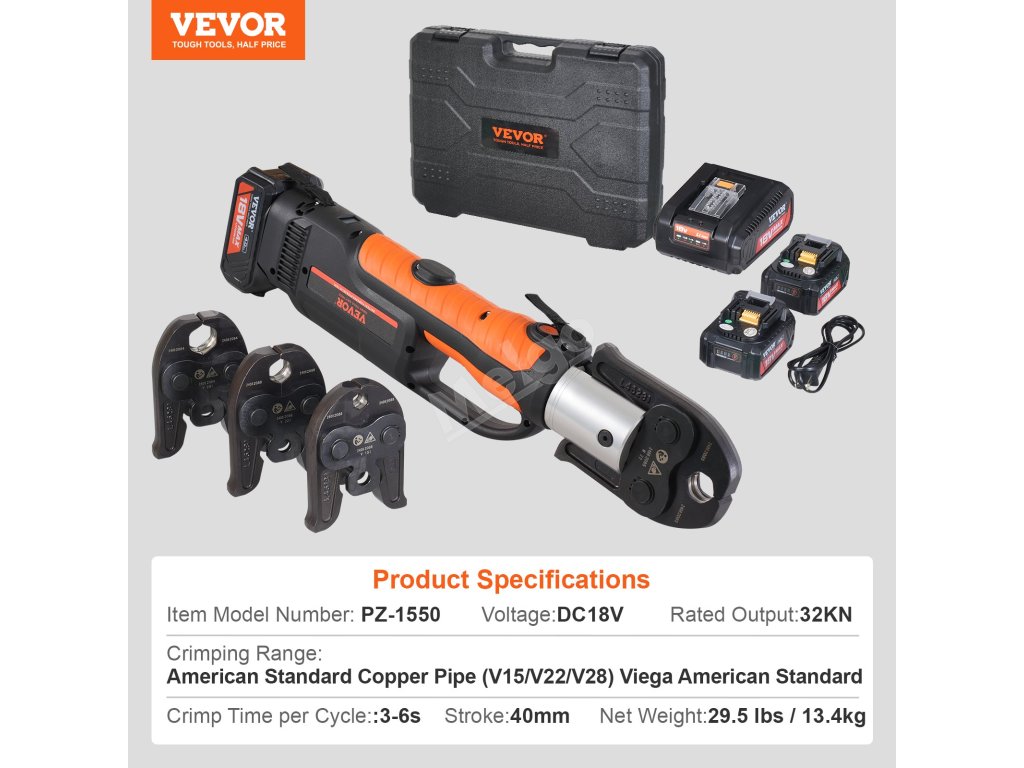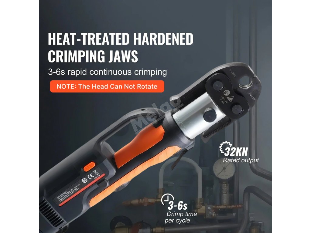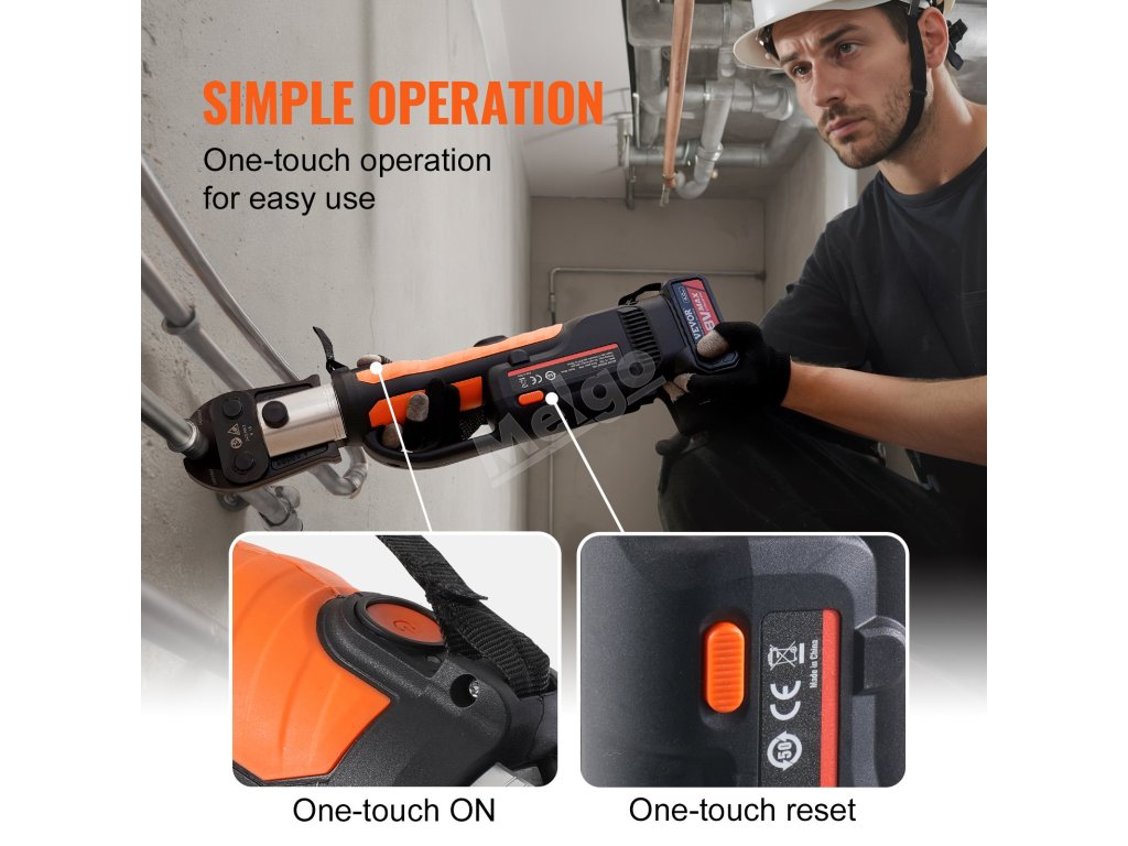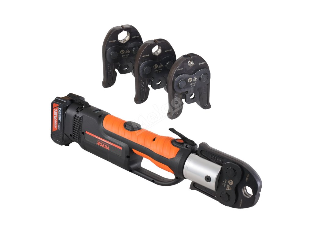 Lithiový akumulátorový krimpovací nástroj pro bezpečné spojování trubek. Vhodné pro spojování měděných a nerezových trubek. V porovnání s ručními modely šetří čas a námahu díky lepšímu ovládání. (Pokud potřebujete krimpovat jiné typy trubek, zakupte si příslušné krimpovací čelisti zvlášť)