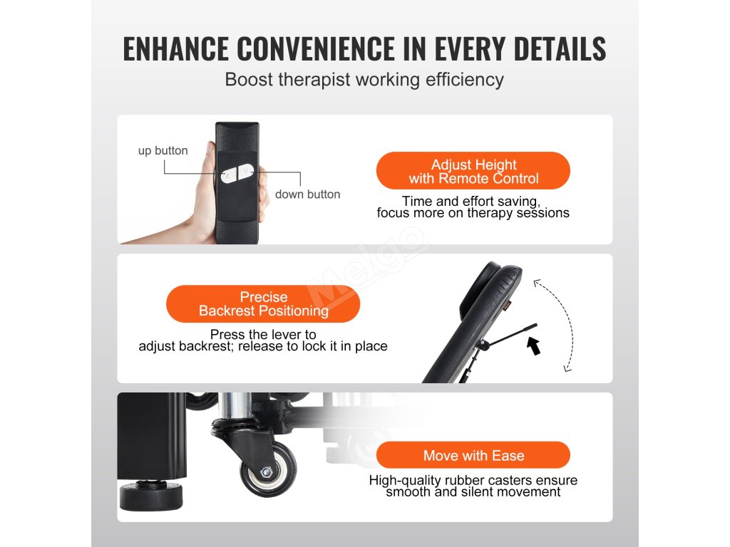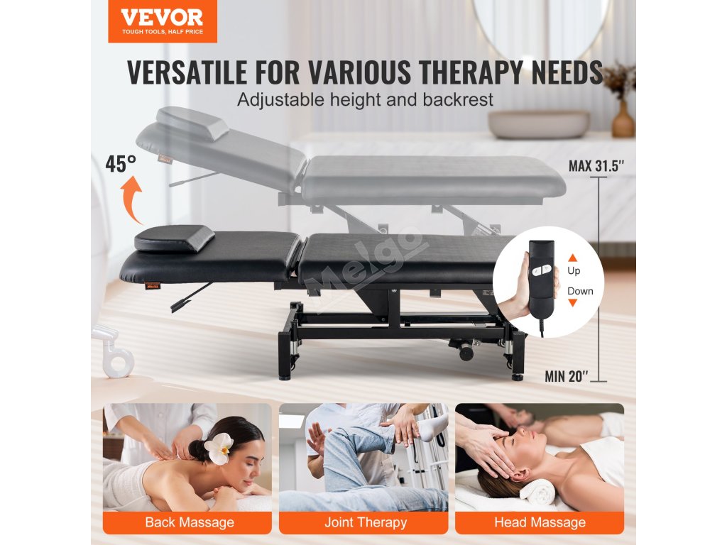 Zažijte individuální relaxaci s elektrickým masážním stolem VEVOR, který nabízí flexibilní nastavení výšky od 20" do 31,5" a přesné polohování opěradla od 0 do 45 stupňů pro optimální pohodlí. Náš motorizovaný masážní stůl je vyroben tak, aby vydržel, a snadno se udržuje, což zajišťuje dlouhotrvající výkon a pohodlí.