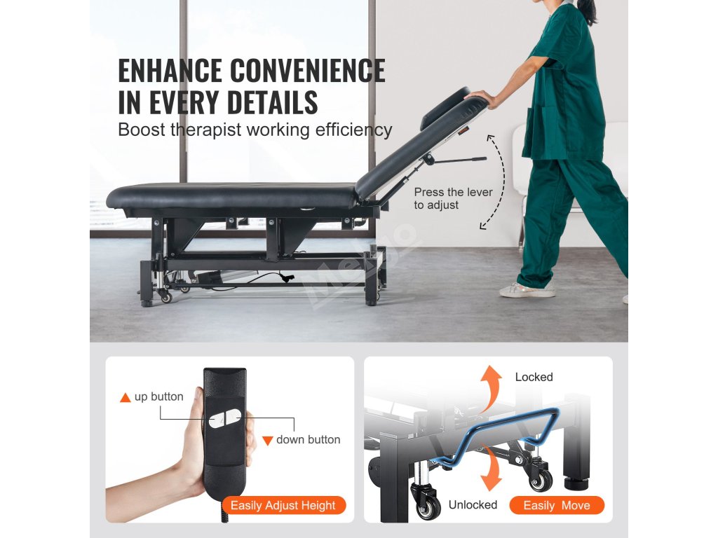 Elektrický masážní stůl, opěrka 0–45°, výška nastav. 550LBS