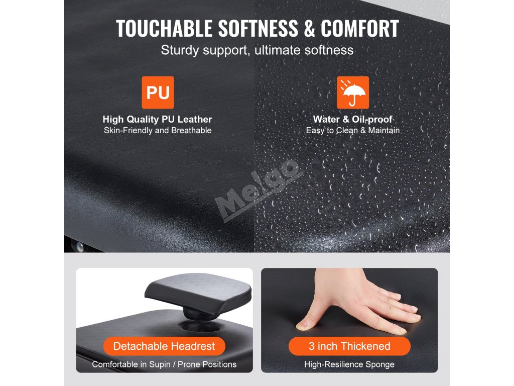 Dopřejte si luxus 29 palců široké stolní desky, která poskytuje dostatek prostoru pro plné uvolnění a roztažení vašich klientů. Deska stolu z PU kůže nabízí měkký povrch šetrný k pokožce, který se snadno čistí a udržuje a je ideální pro masáže, terapii páteře a další procedury.