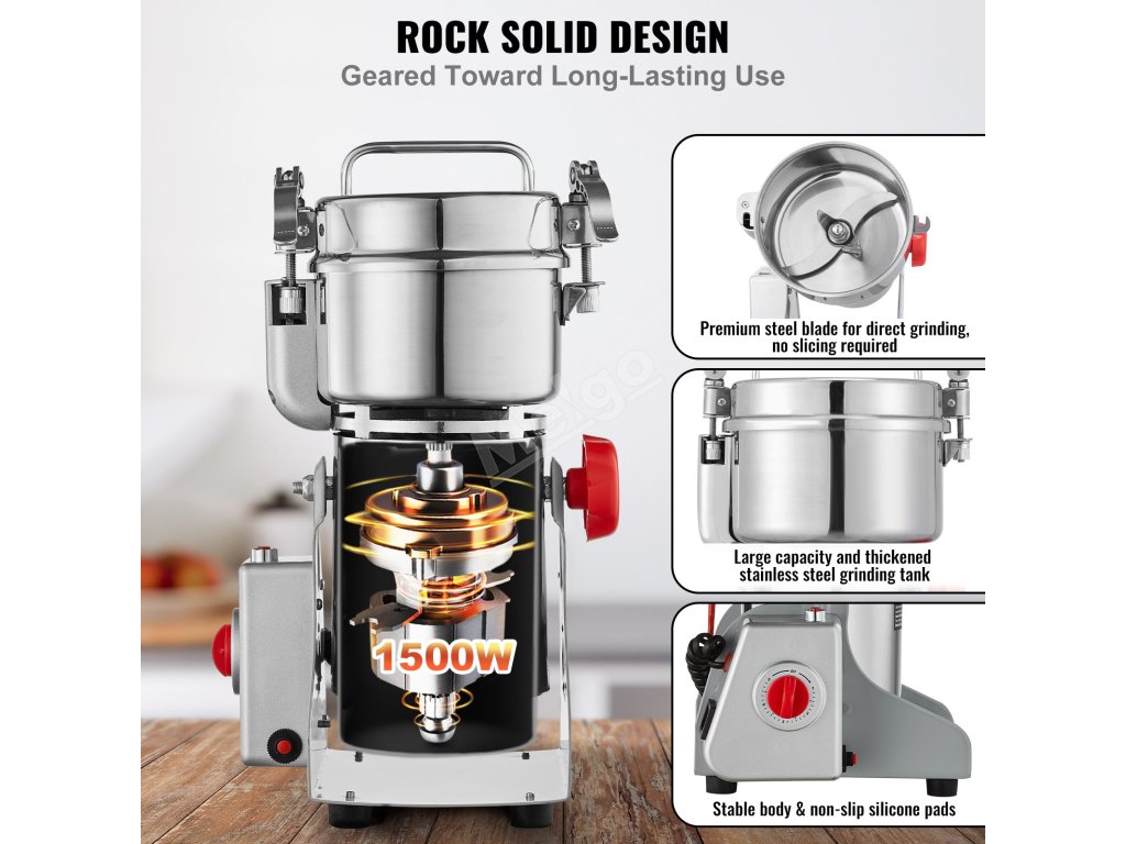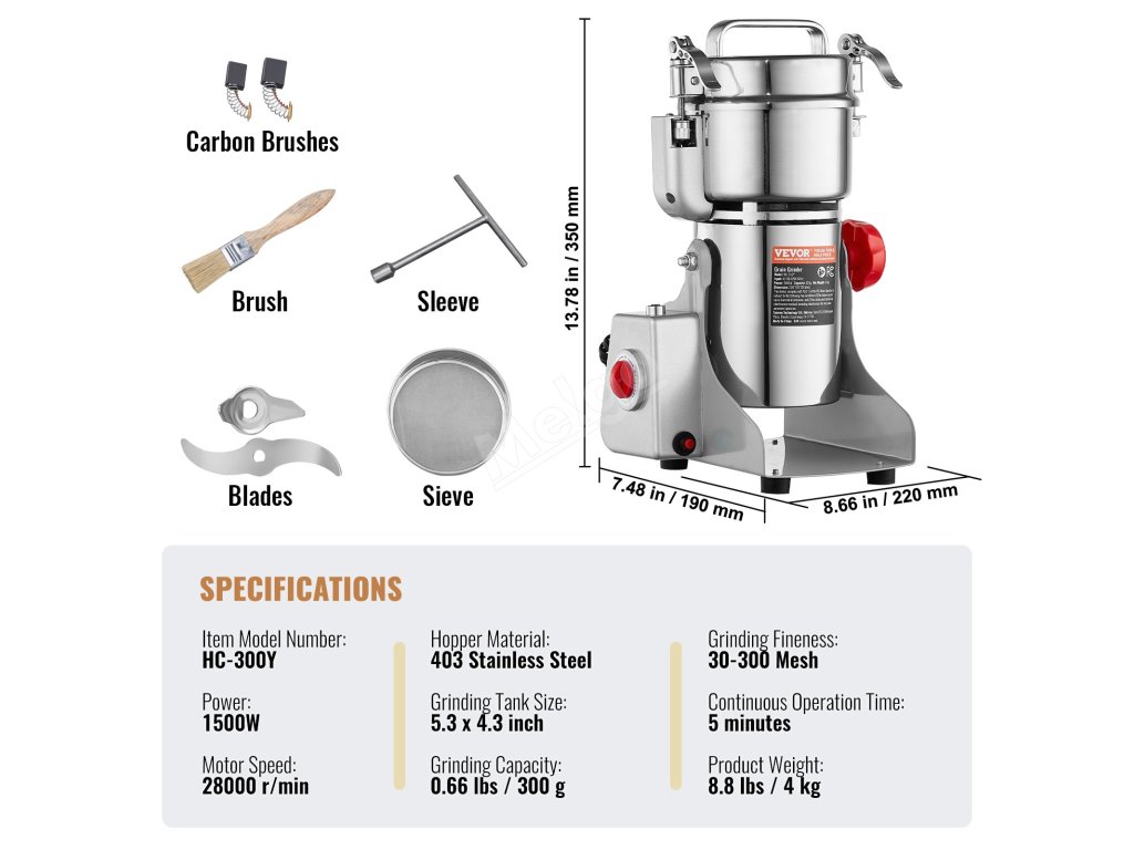 Elektrický mlýnek 300 g, 1500 W, nerez, kyvný, na zrna a pepř