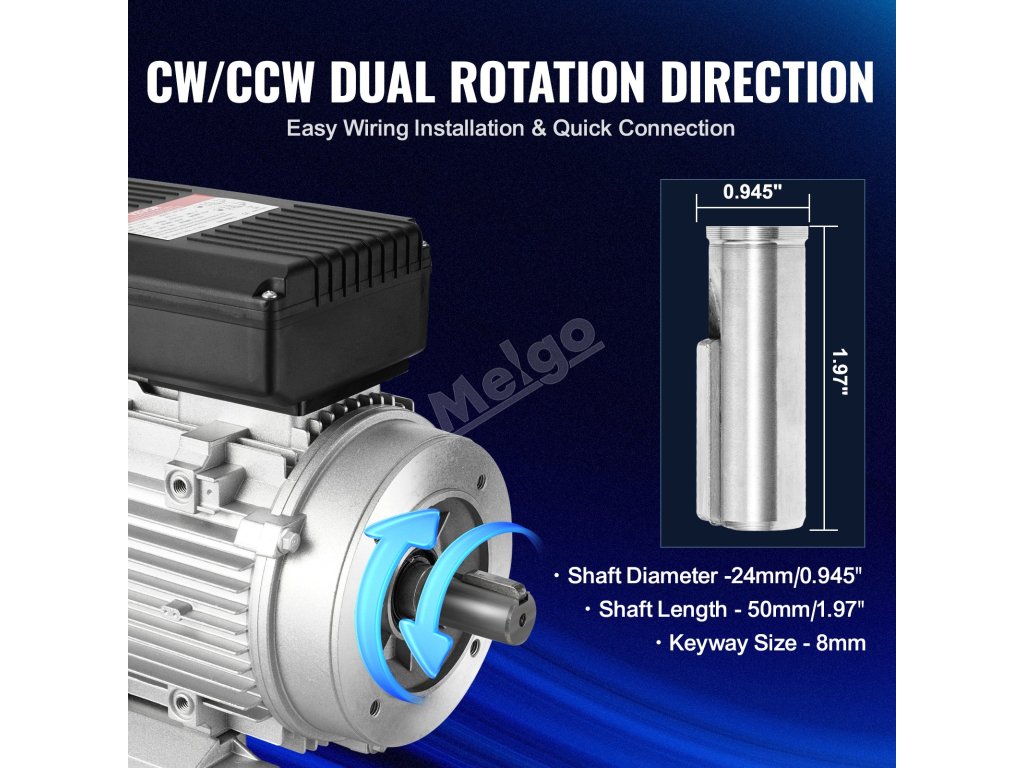 Díky duálnímu směru otáčení CW/CCW se tento motor vzduchového kompresoru snadno instaluje a je uživatelsky přívětivý. Díky průměru hřídele 24 mm, délce hřídele 50 mm a drážce 8 mm se snadno připojuje k různým zařízením a nabízí velkou univerzálnost pro různé aplikace.
