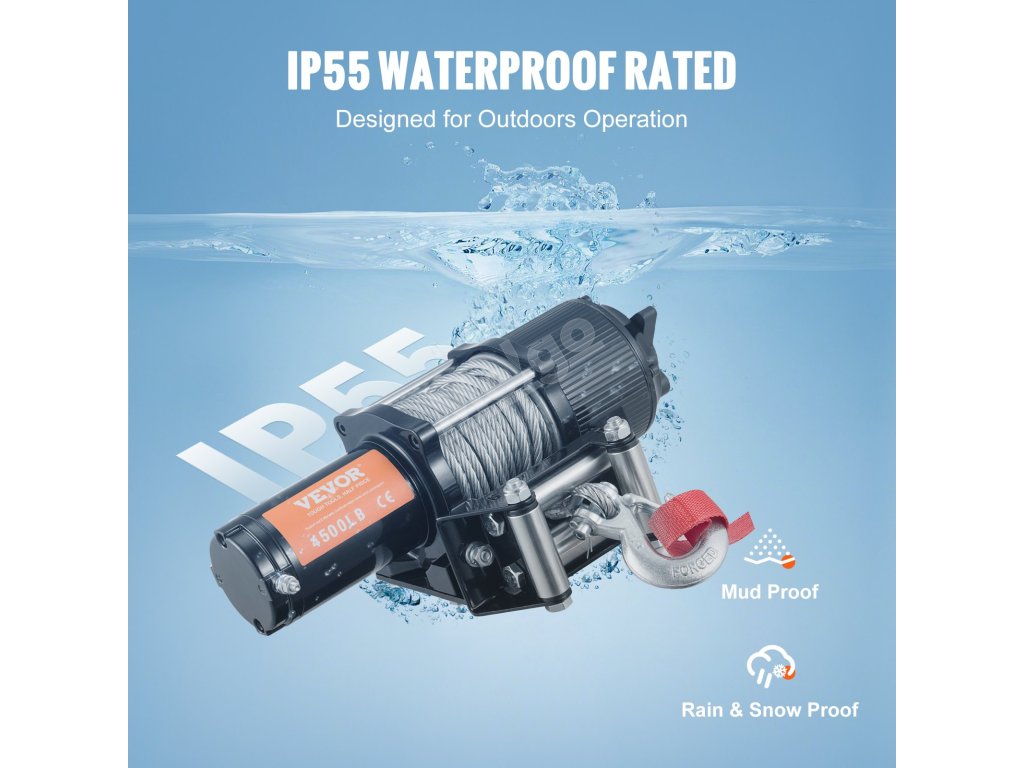 Tento elektrický naviják je vodotěsný, snadno zvládá náročné venkovní podmínky. Nebojí se bláta, deště ani sněhu.