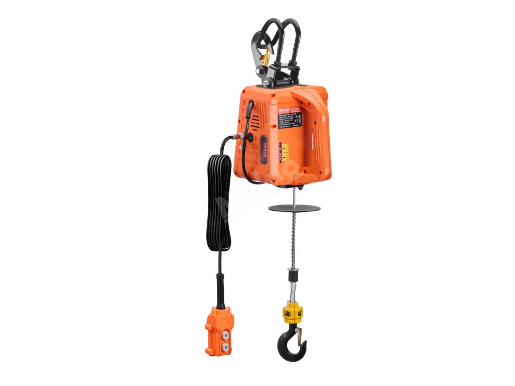 Tento přenosný elektrický zvedák má 1500W motor, nosnost 1100 lbs/500 kg a výšku zdvihu až 30 ft/9,1 m. Nabízí ruční, kabelové (27 ft) a bezdrátové (330 ft) ovládání. Dva 2,2palcové háky zajišťují stabilitu pro různé úkoly.