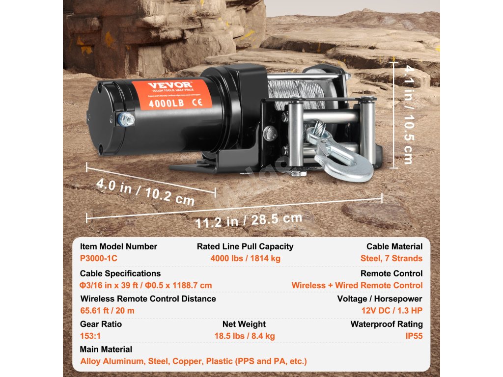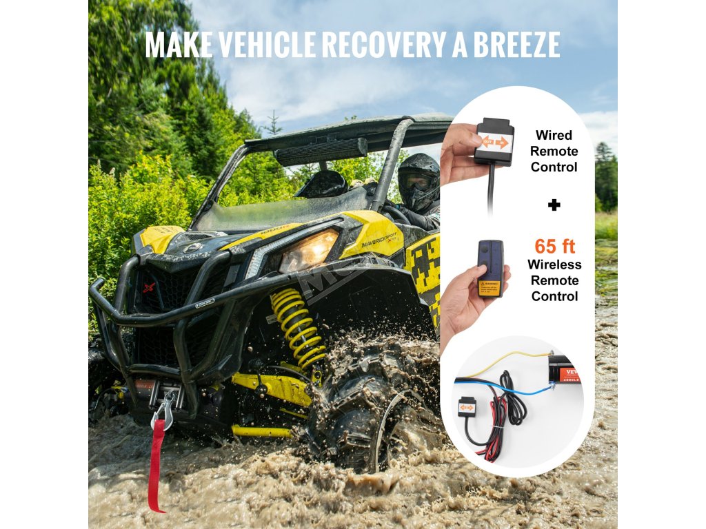 Náš těžký elektrický naviják s tažnou silou 4000 liber a vodotěsností IP55 je ideální pro vytažení vašeho čtyřkolky nebo UTV z lepkavých bahenních jam. Je vybaven měděným motorem s permanentním magnetem o výkonu 12 VDC/1,3 HP, převodovým poměrem 153:1 a ocelovým lanem, takže zaručeně nikdy na dlouho neuvízne.