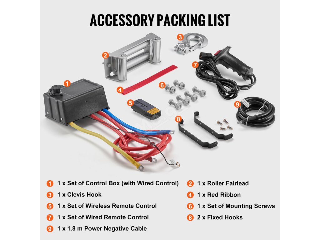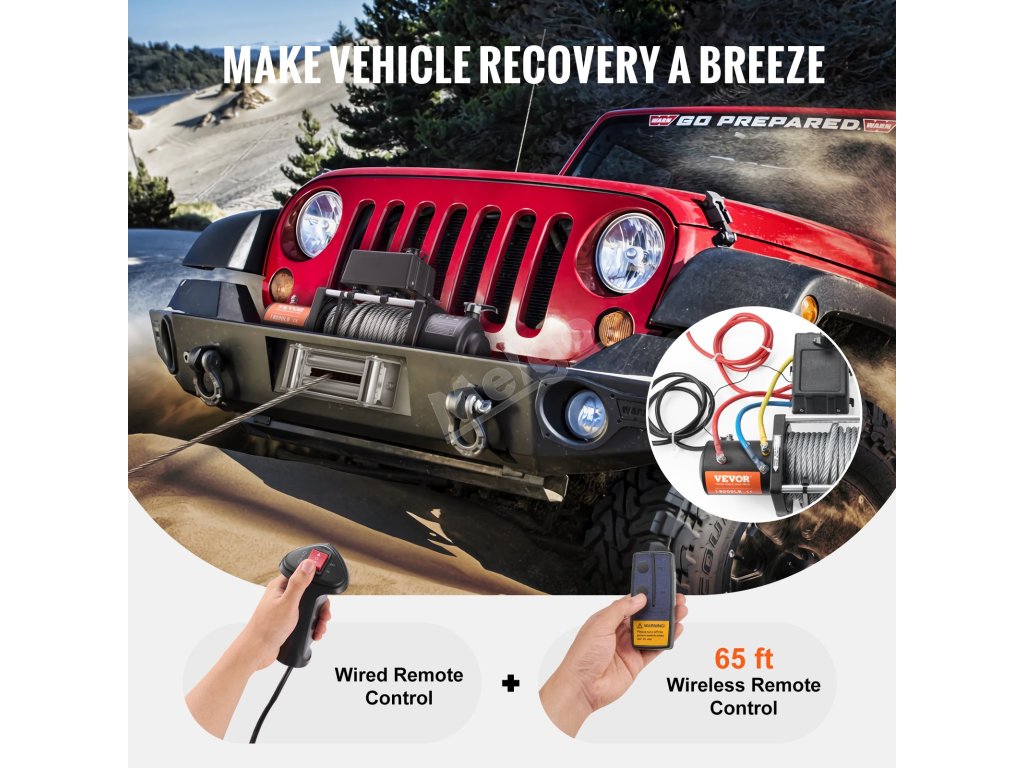 Náš 12V naviják je vybaven barevně označenými napájecími kabely pro rychlé a bezchybné nastavení. Bezdrátové dálkové ovládání pomáhá ovládat samonavíjení vozidla bez překážek v dosahu 65,61 ft/20 m. Máme také kabelové dálkové ovládání, které vám poskytne veškeré potřebné ovládací prvky.