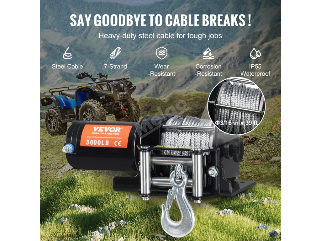 elektrický naviják pro čtyřkolky s nosností 3000 liber, který si s jistotou poradí s jakýmkoli terénem