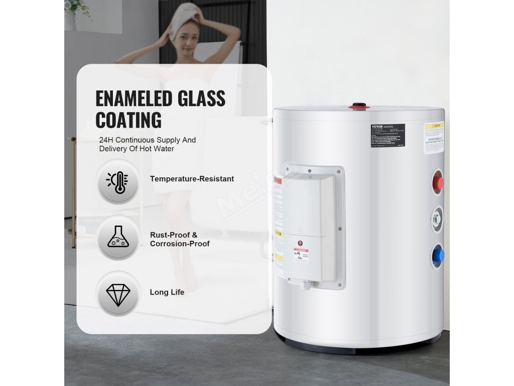 Beztlakový ohřívač vody je vyroben z vysoce kvalitních materiálů pro dlouhou životnost. Poskytuje velkou kapacitu teplé vody, která se ohřeje až na 167℉/75 ℃ s nepřetržitou dodávkou po dobu 24 hodin. Mezi bezpečnostní prvky patří LED displej a ochrana proti přehřátí pro spolehlivé používání.