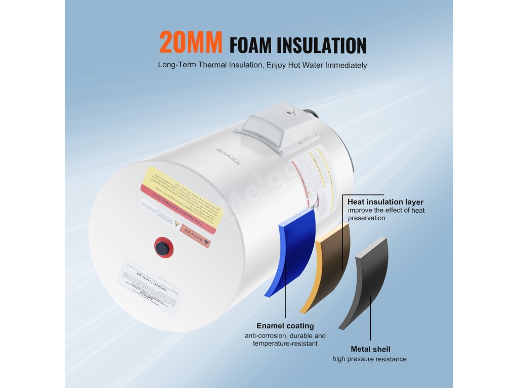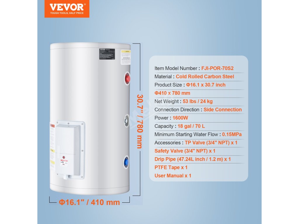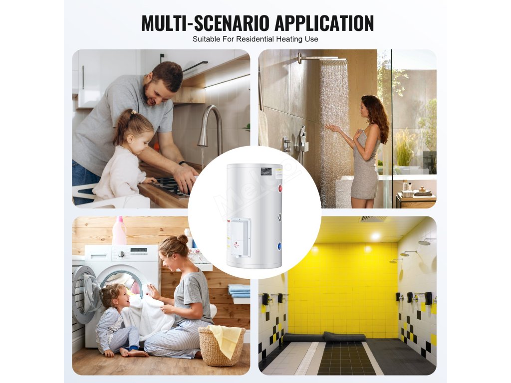 Beztlakový ohřívač vody je vyroben z vysoce kvalitních materiálů pro dlouhou životnost. Poskytuje velkou kapacitu teplé vody, která se ohřeje až na 167℉/75 ℃ s nepřetržitou dodávkou po dobu 24 hodin. Mezi bezpečnostní prvky patří LED displej a ochrana proti přehřátí pro spolehlivé používání.