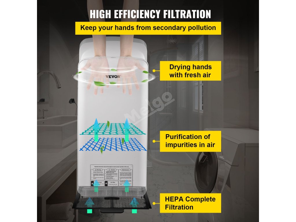 Tento průmyslový osoušeč rukou pro domácí i komerční použití je dobrou volbou pro sušení rukou. Můžete jej používat na různých místech podle potřeby, se snadnou instalací.
