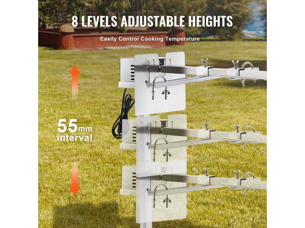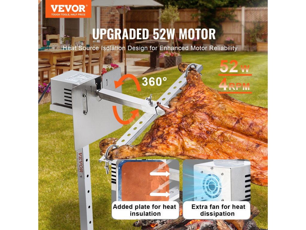 Grilování nebylo nikdy jednodušší s naší všestrannou grilovací sadou! Je vybavena výkonným 52W motorem, který bez námahy otáčí grilovací tyčí rychlostí 4 ot. Součástí balení je tepelně izolační deska a ventilátor, které poskytují vynikající izolaci a chlazení a zajišťují snadnou obsluhu.