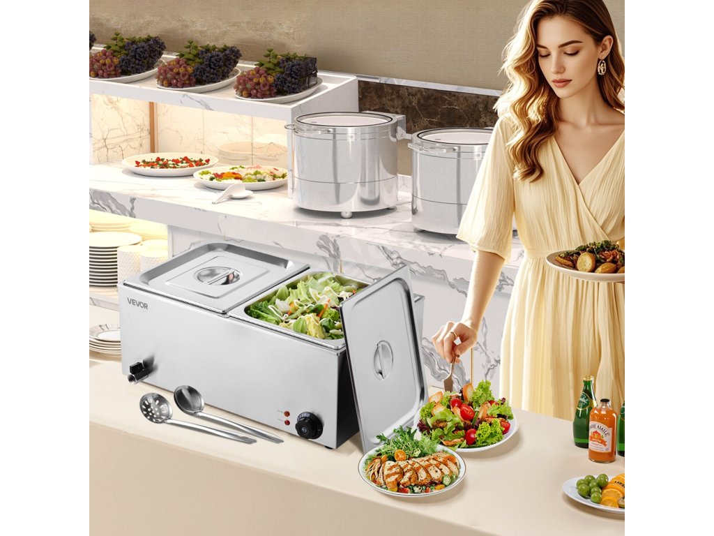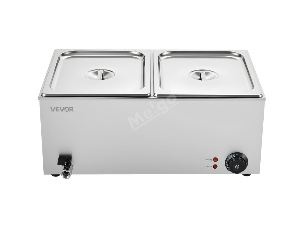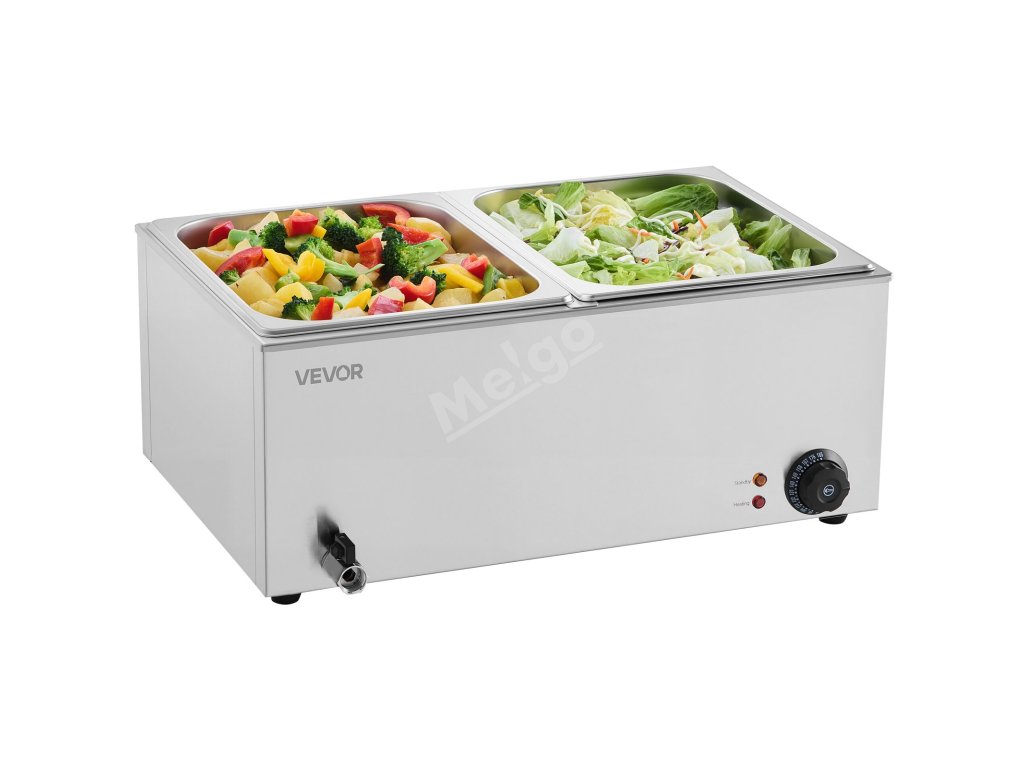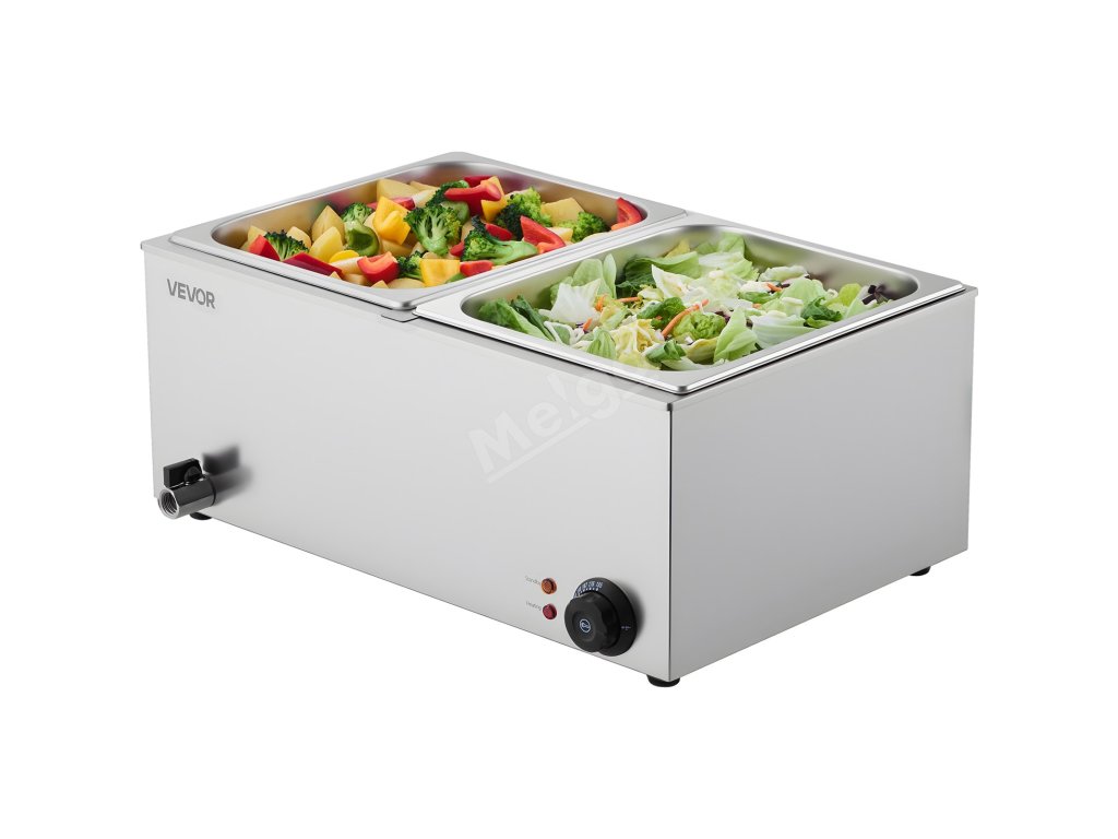 Elektrický parní ohřev jídla nerezový, 2 pánve, 1200 W, 30–85 °C