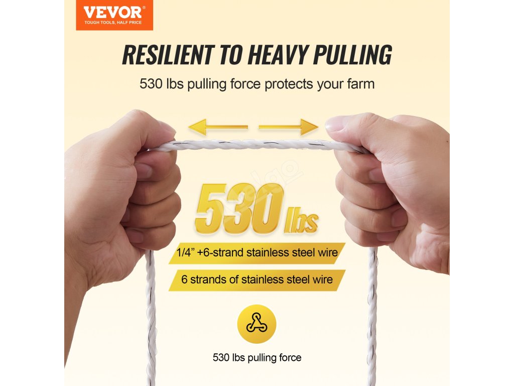 Toto elektrické ohradníkové lano účinně brání vniknutí zvířat a chrání vaše pole, zahrady a rostliny před poškozením. Odrazuje také predátory. Účinný pulzní proud vytváří psychologickou bariéru a zajišťuje bezpečnost vaší farmy a zvířat.