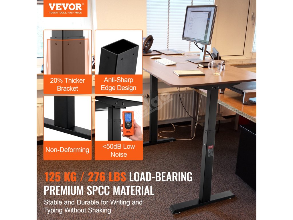 Díky hlučnosti pod 50 decibelů při nastavování výšky se tento stůl ovládá hladce a rychle, zatímco antikolizní konstrukce zajišťuje větší bezpečnost. Jeho plynulé nastavení výšky vyhovuje různým potřebám uživatelů, zatímco zesílené spodní tyče zajišťují stabilitu a zabraňují otřesům.