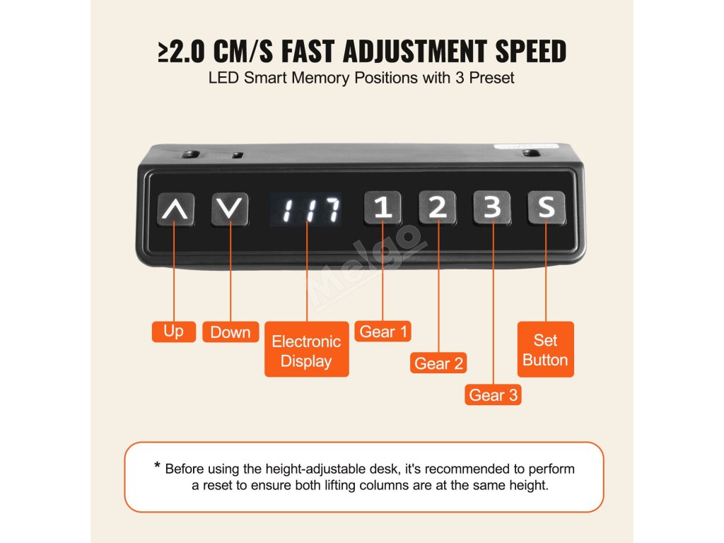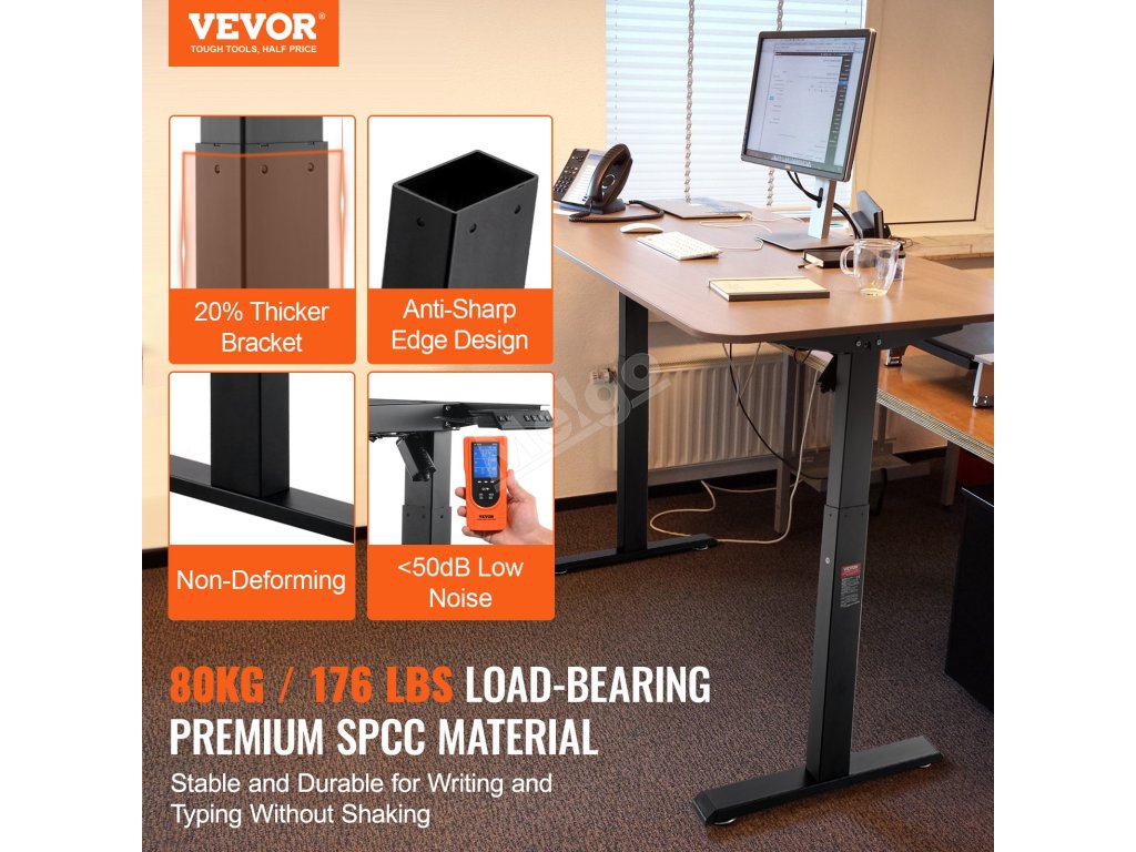 Díky hlučnosti pod 50 decibelů při nastavování výšky se tento stůl ovládá hladce a rychle, zatímco antikolizní konstrukce zajišťuje větší bezpečnost. Jeho plynulé nastavení výšky vyhovuje různým potřebám uživatelů, zatímco zesílené spodní tyče zajišťují stabilitu a zabraňují otřesům.